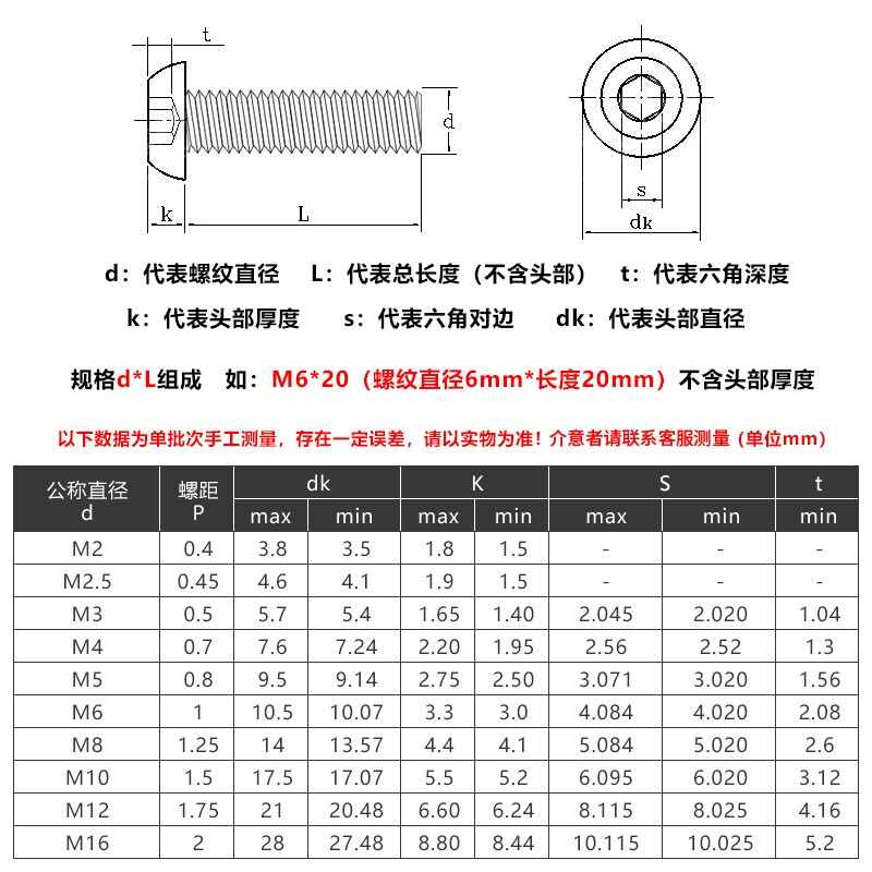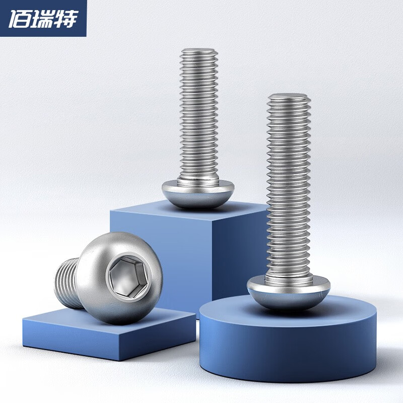 > 佰瑞特316不锈钢圆头内六角螺丝钉半圆头盘头内六方螺钉圆杯螺栓ISO7380 316圆头内六角 M4*10【20粒】