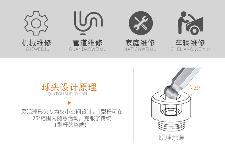 > 佰瑞特 带柄T型内六角扳手单个7型螺丝刀球圆头六棱角扳手六角匙铬钒钢 4.0 mm