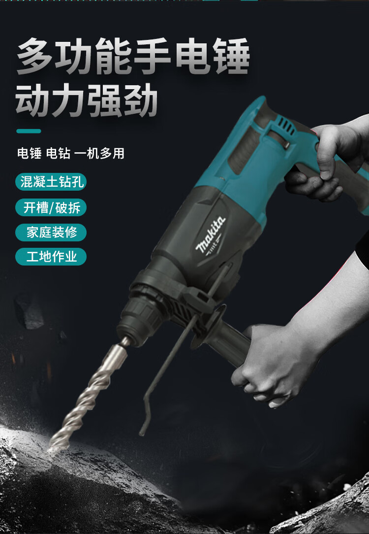 牧田(MAKITA)M8700ZB电锤两用冲击钻工业级混泥土电钻电动工具22MM 710W