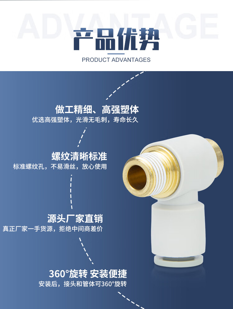 > 安达通 万向气管接头 气动迷你万向快插螺纹快插内六角弯头气管接头 KQ2VS06-01S