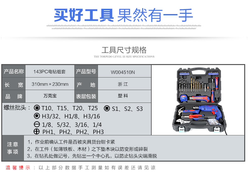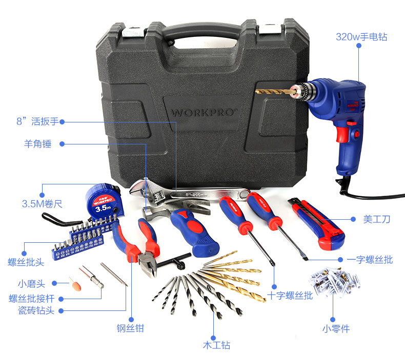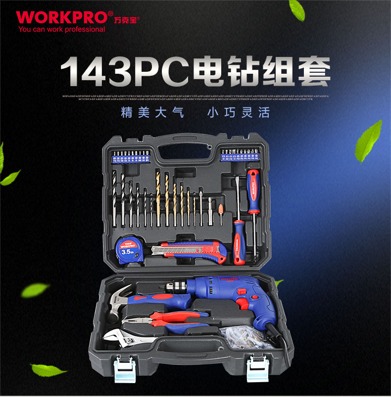 > 万克宝(WORKPRO)W004510N 家用电钻工具箱套装 综合维修组套