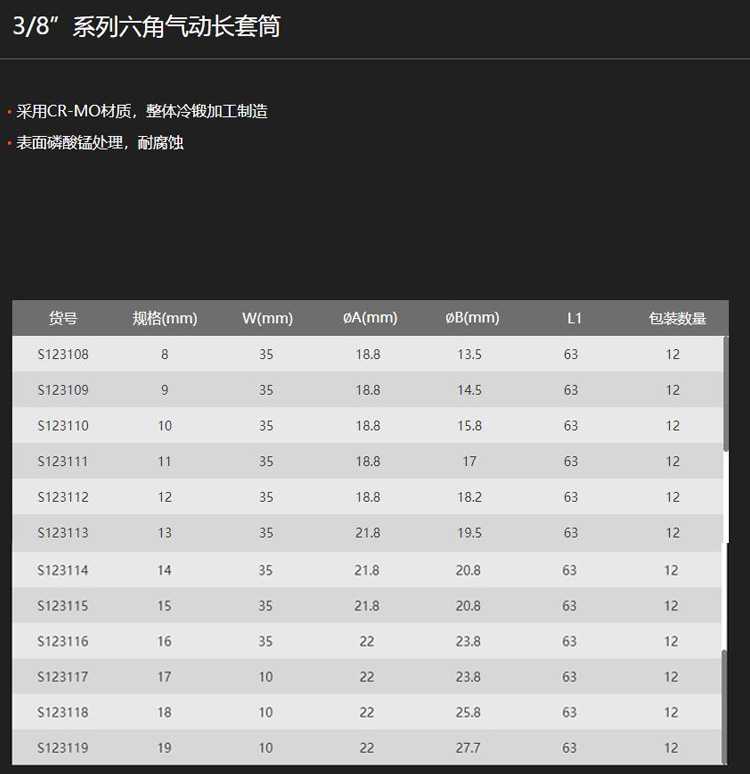 > 钢盾 SHEFFIELD S123115 气动公制长套筒15mm