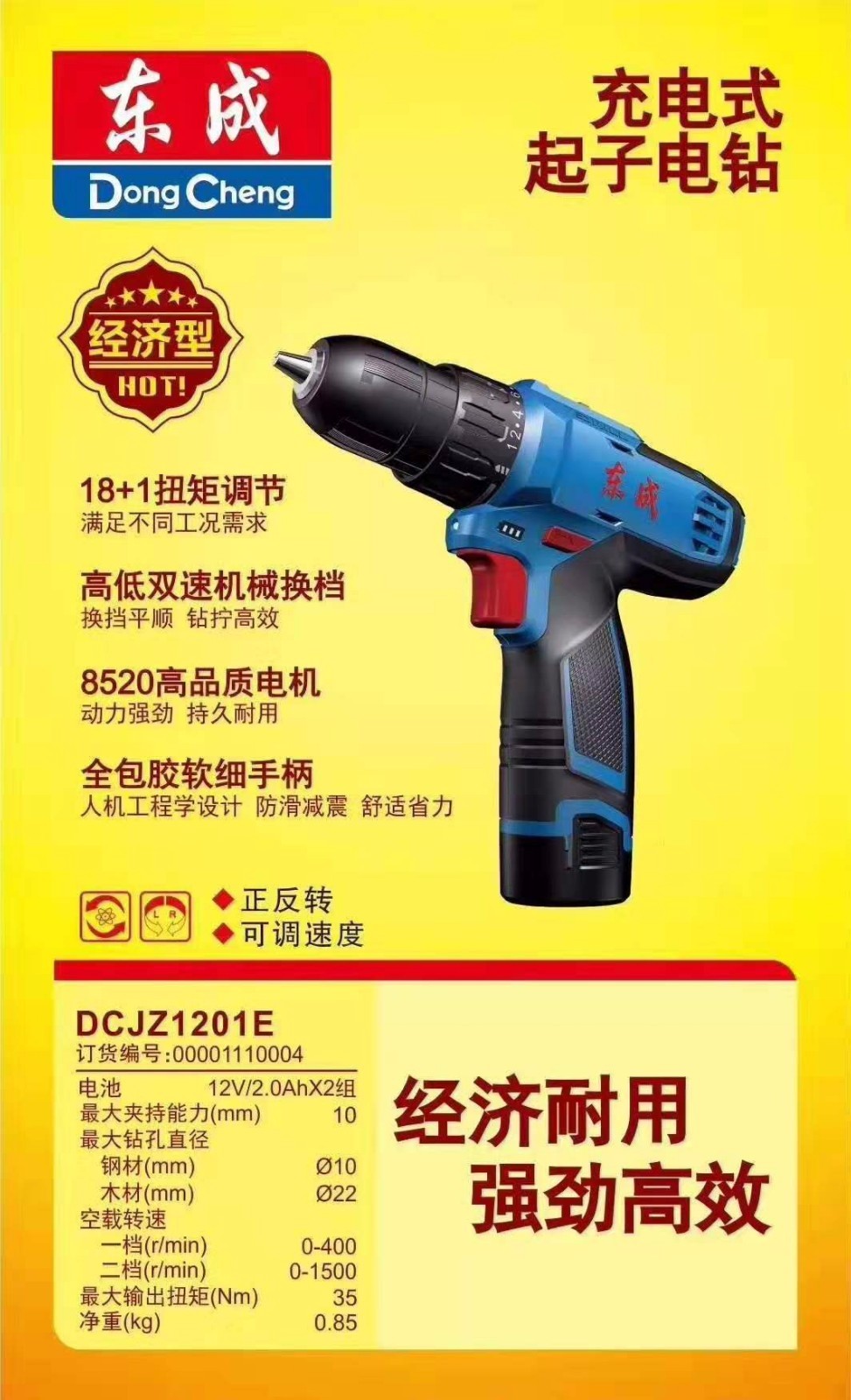 东成 锂电钻12V充电钻手电钻 电动工具充电式起子电钻正反调速东城 DCJZ1201E 标配
