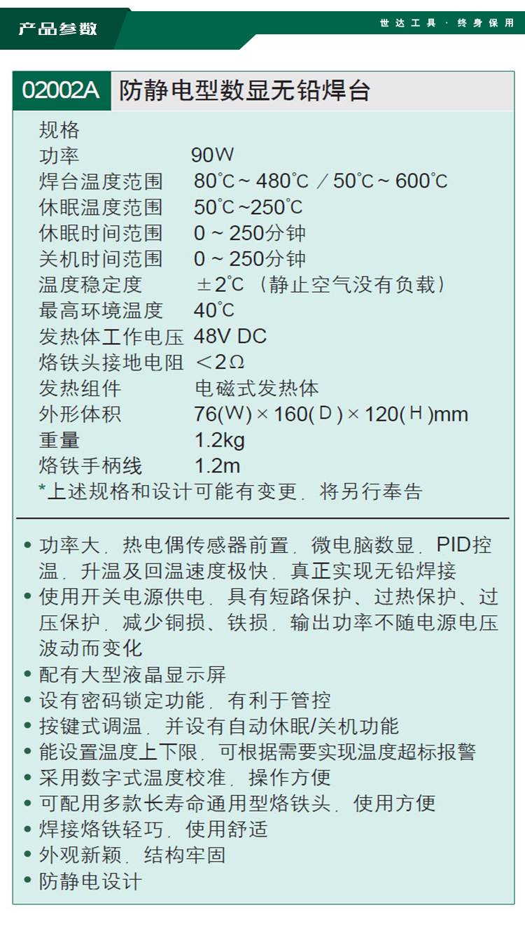 > 世达(SATA)工具焊台防工业级智能无铅焊台恒温电烙铁电焊台02002A 现货