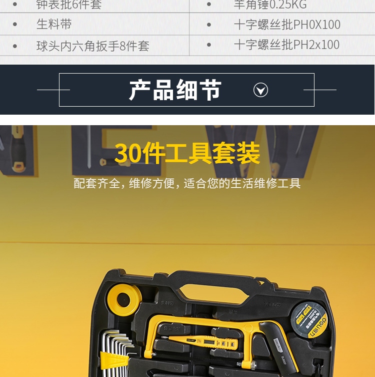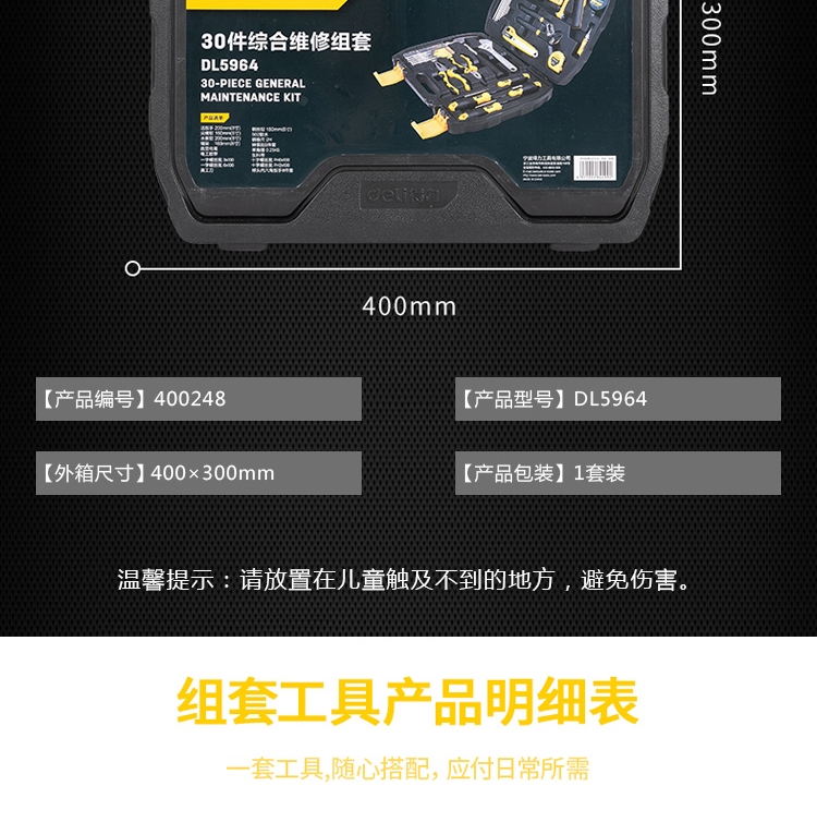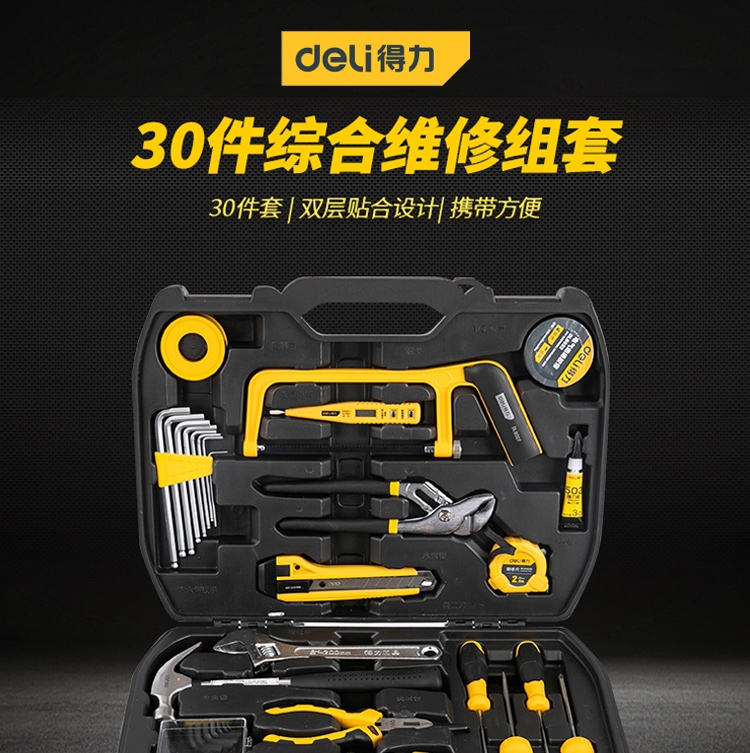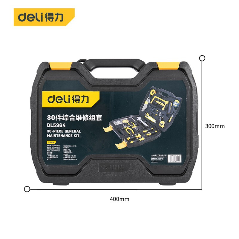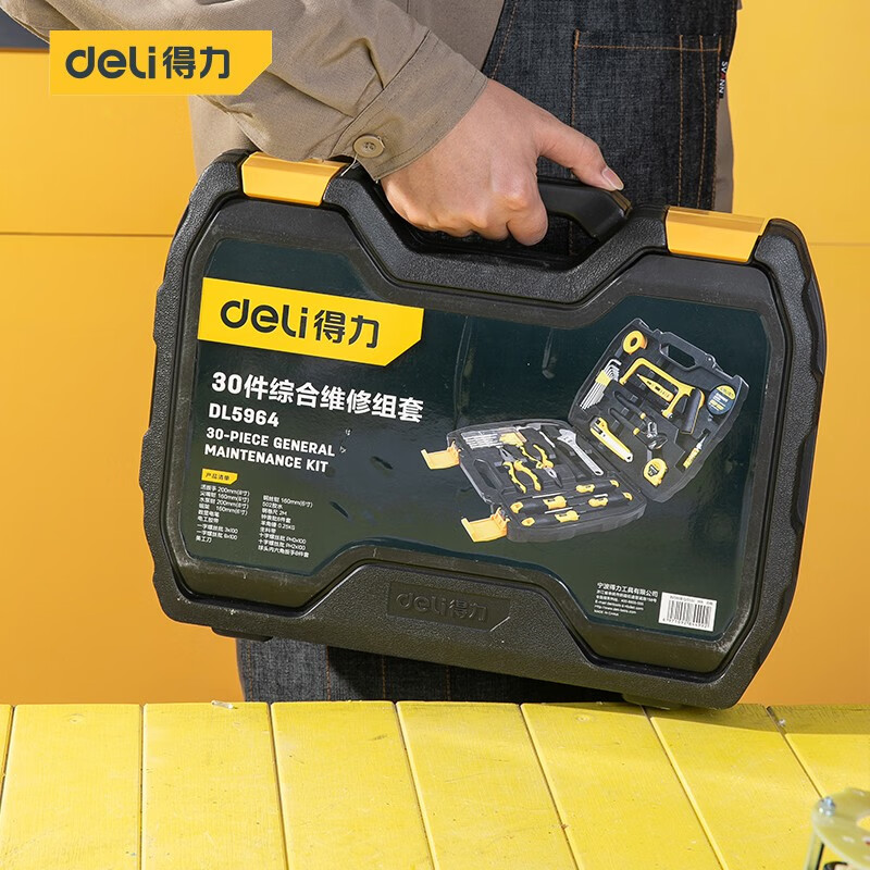 > 得力(deli) 多功能五金工具箱套装 手动工具电工维修工具箱应急包30件套 DL5964 400248