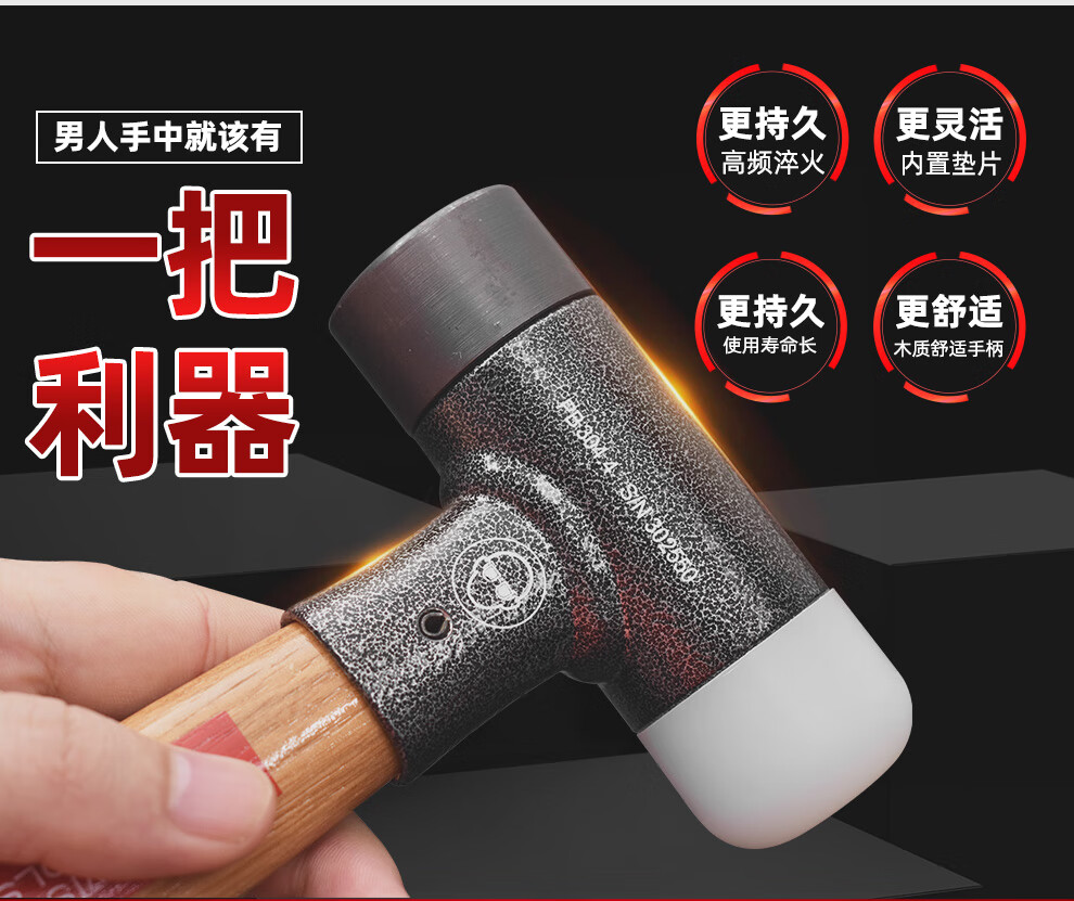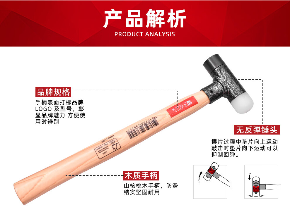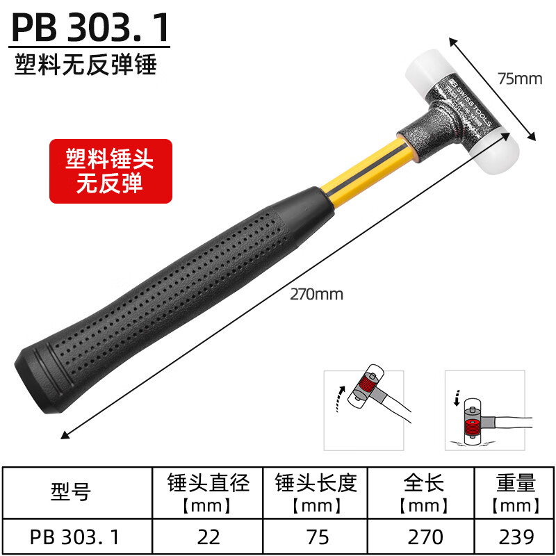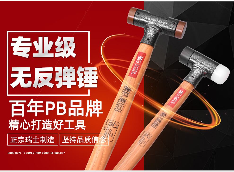 > PB SWISSTOOLS瑞士原装进口无回弹力安装锤尼龙塑料锤木柄防震锤子圆头安装锤 PB 303.1