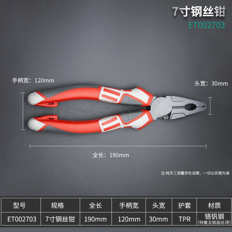 伊莱科(ELECALL)老虎钳尖嘴钳斜嘴钳省力钳8寸钢丝钳断线钳多功能五金工具斜口钳 省力7寸钢丝钳ET002703