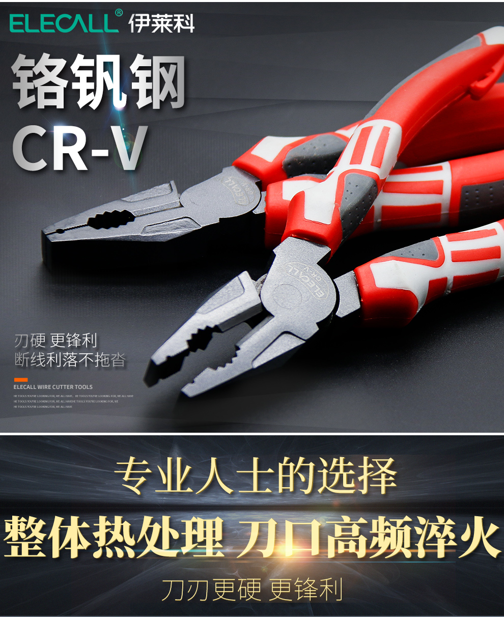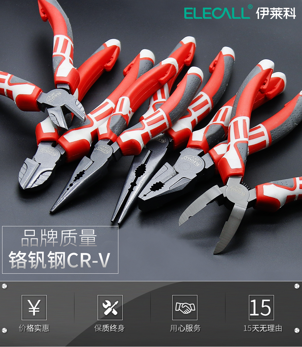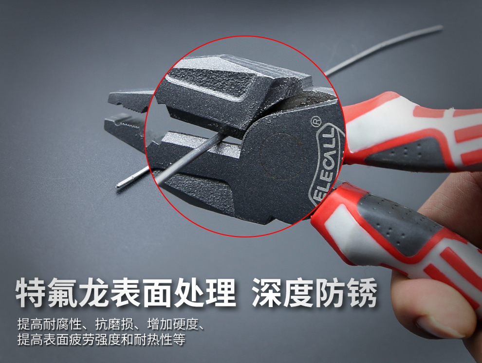> 伊莱科(ELECALL)老虎钳尖嘴钳斜嘴钳省力钳8寸钢丝钳断线钳多功能五金工具斜口钳 省力7寸钢丝钳ET002703