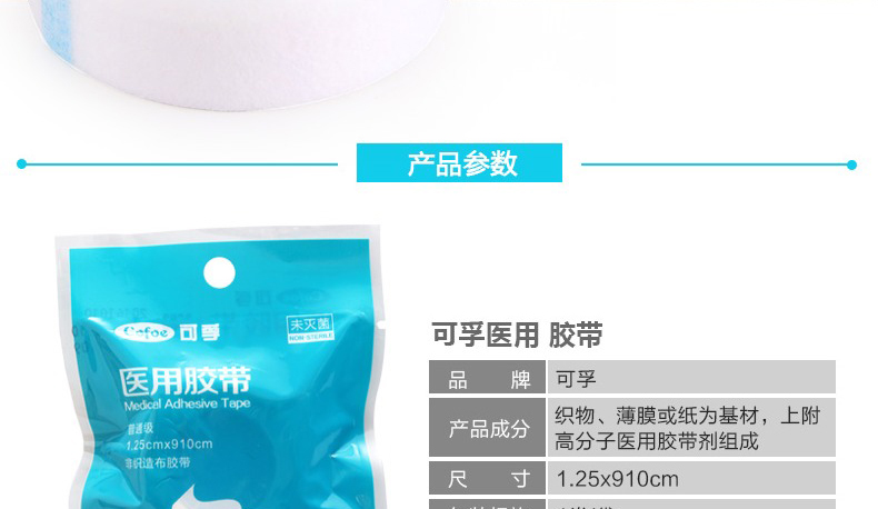 > 可孚 医用非造织布胶带一次性输液固定带1.25cm*910cm透气胶布10卷