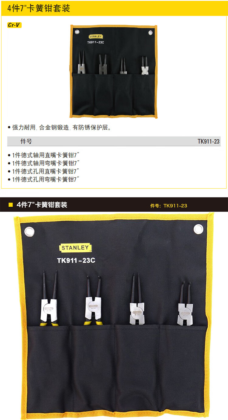 > 史丹利(STANLEY)4件7英寸卡簧钳套装内外卡弹簧挡圈钳组套TK911-23C