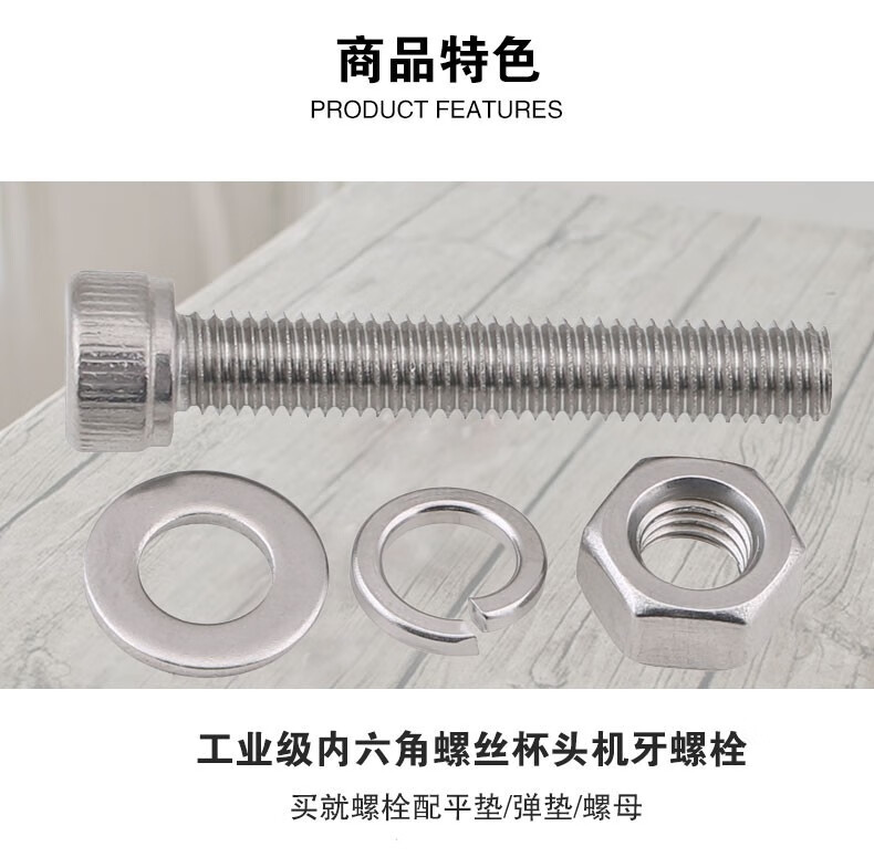 佰瑞特316不锈钢杯头内六角螺栓螺丝螺母弹垫片套装大全圆柱头螺钉组合 M3*25【25套】