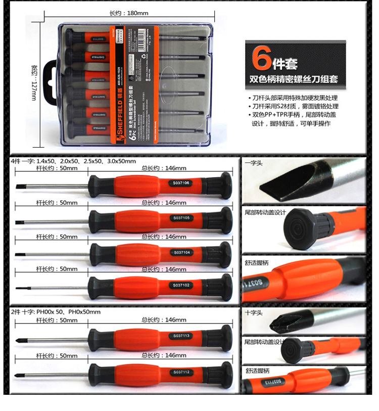 钢盾(SHEFFIELD) 6件套螺丝刀套装 一字十字精密螺丝批电脑维修工具S037007SD