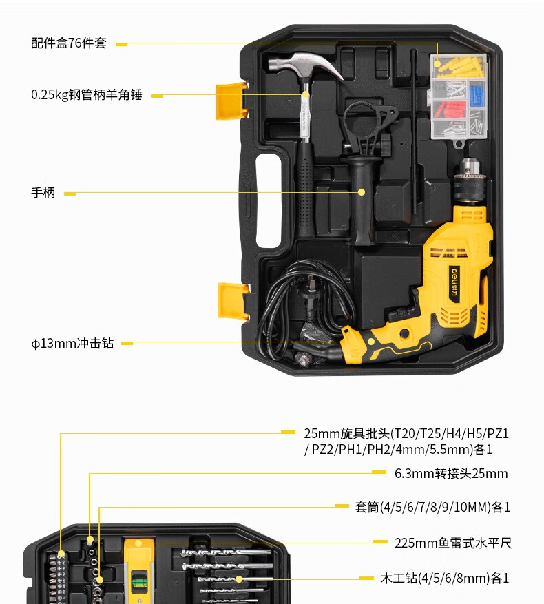 得力(deli ) 冲击钻套装 多功能电动螺丝刀工具116件套 DL6011 4K00083