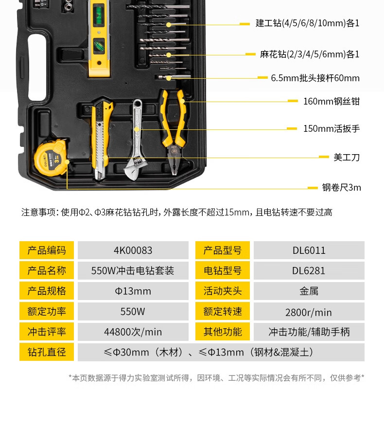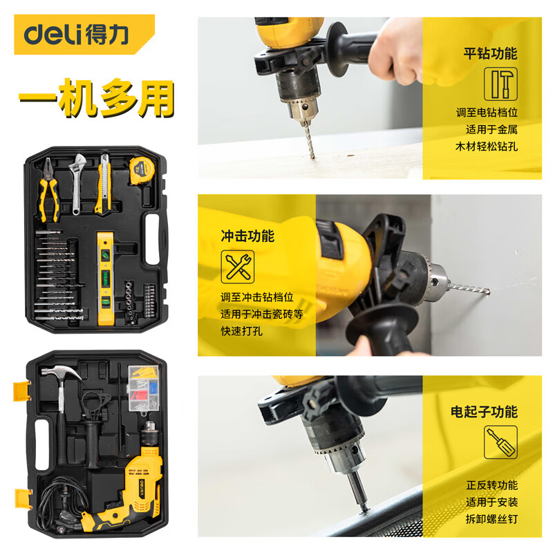 > 得力(deli ) 冲击钻套装 多功能电动螺丝刀工具116件套 DL6011 4K00083