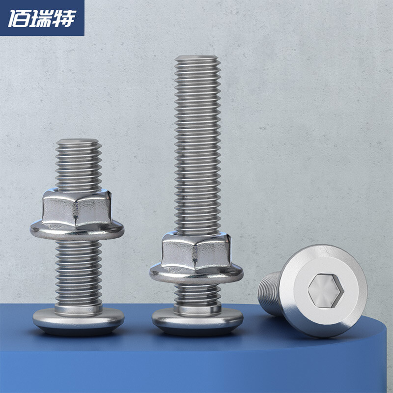 佰瑞特304不锈钢倒边内六角螺丝螺母大全平圆头内六角螺钉平头斜边螺栓 M5*30【25套】