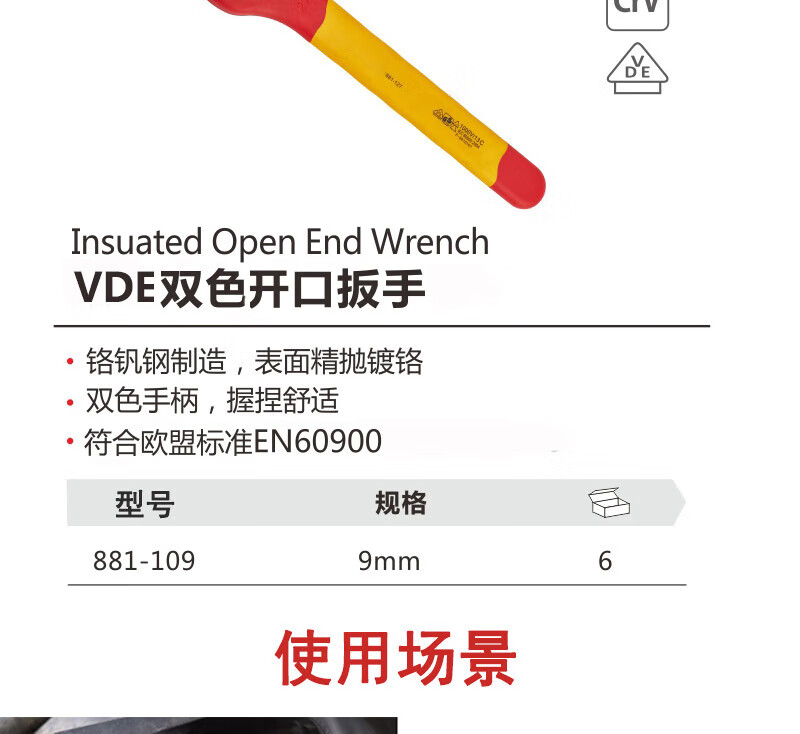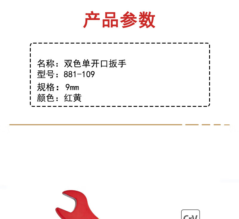 > 贝傅特 双色单开口扳手9mm 工业级手动紧固工具 881-109