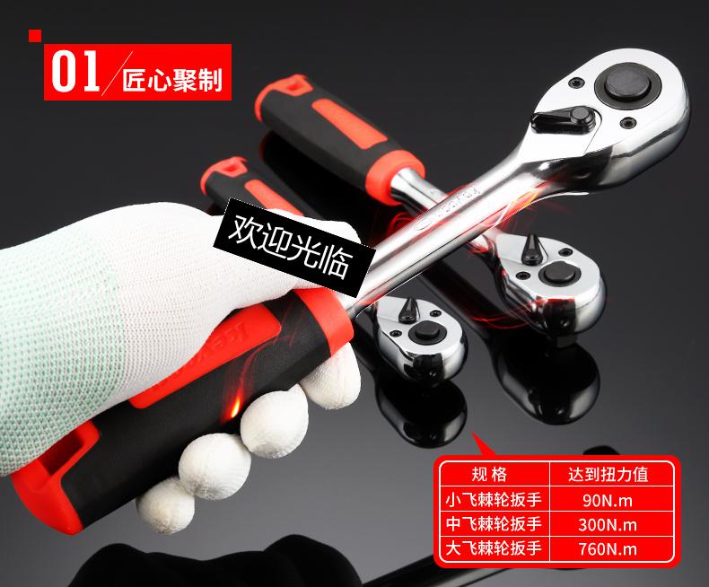 > 工业级套筒快速扳手棘轮多功能自动汽修大飞中飞小飞修车扳手工具 1/4直柄小飞(送头变中飞)