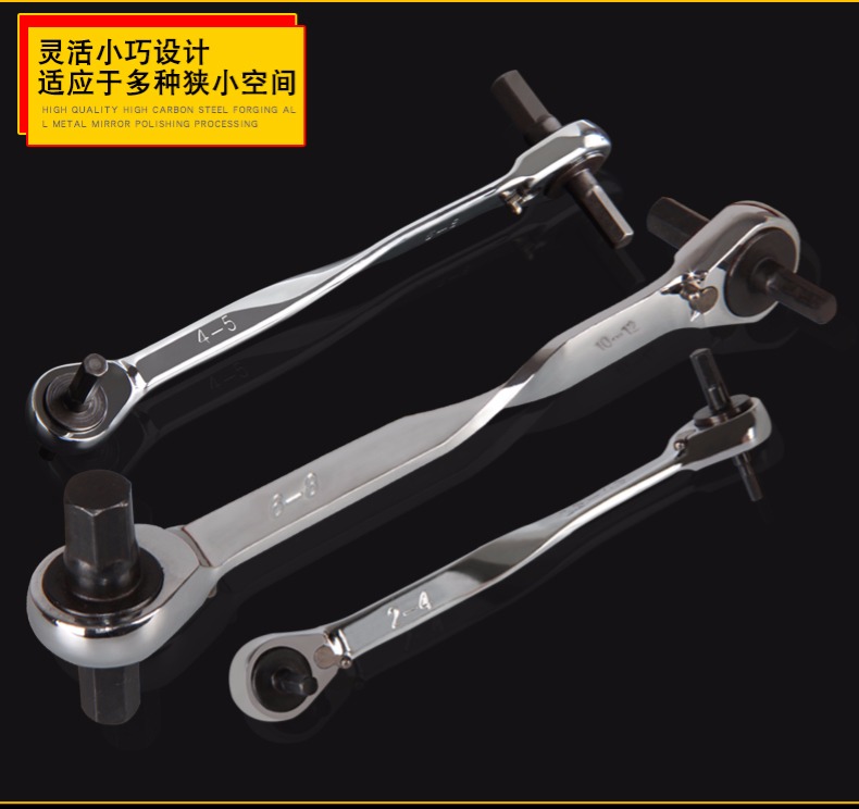 > 棘轮柄六角批头方扳手多功能工具内六角双向省力自动快速扳手套装 2*4-2.5*4.5