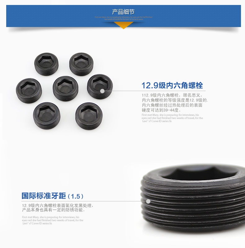> 佰瑞特 PG1.5喉塞螺丝内六角油塞螺丝堵头螺丝钉止付螺丝螺钉12.9级螺塞 M30-1.5牙【2粒】