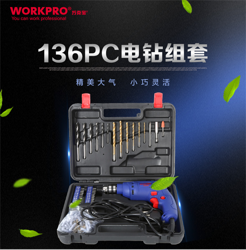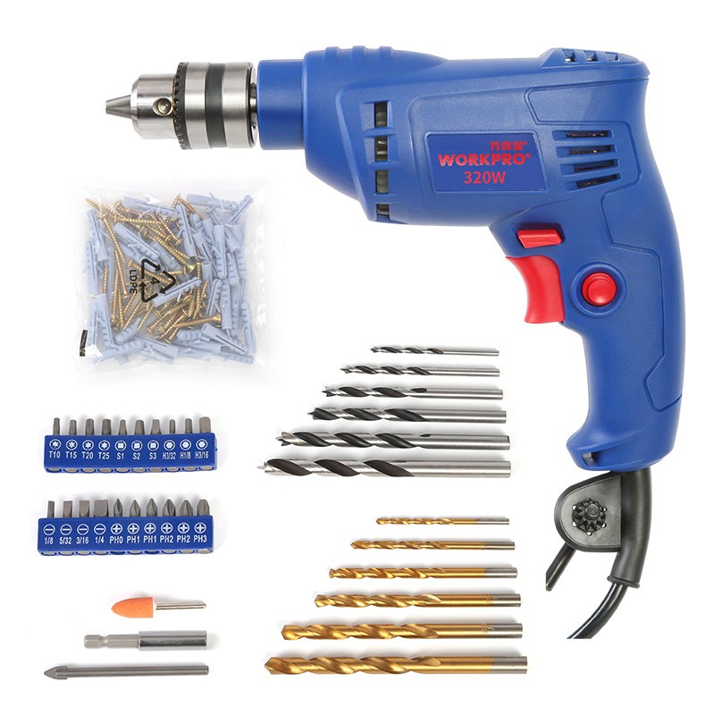 > 万克宝(WORKPRO)W004509N 家用电钻套装 多功能微型手电钻 五金维修工具组套