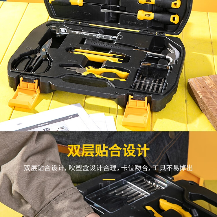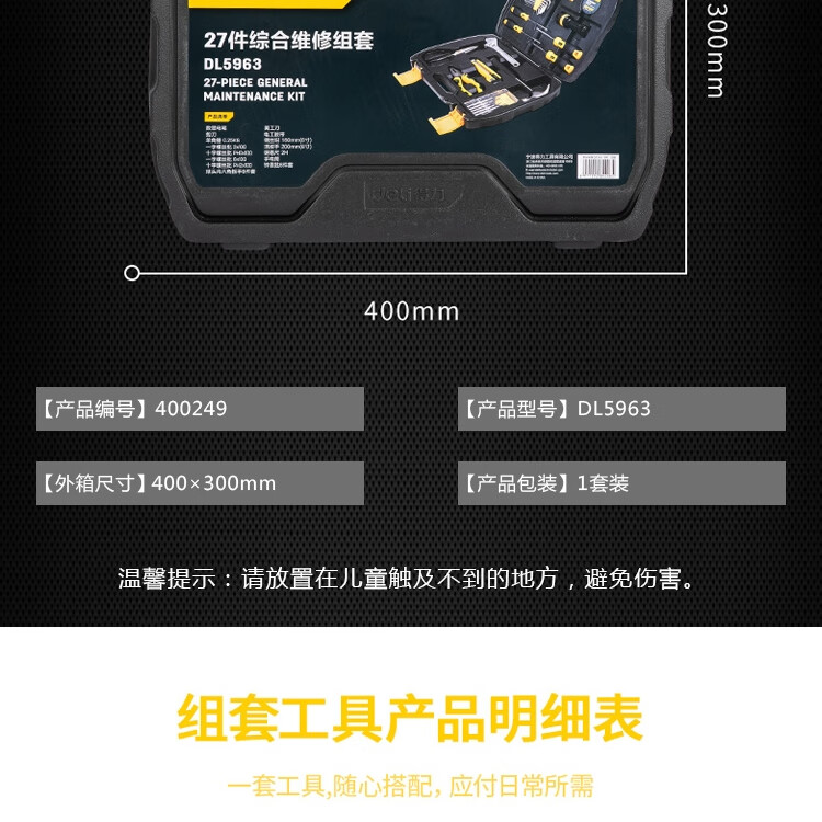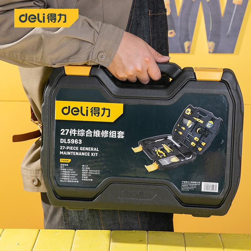 > 得力(deli) 多功能五金工具箱套装 手动工具电工维修工具箱应急包27件 DL5963 400249