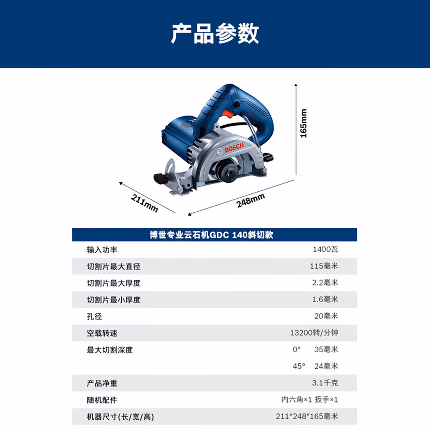 > 博世(BOSCH)瓷砖石材切割机GDC140云石机家用多功能博士1400W大功率 0W大功率 0W大功率