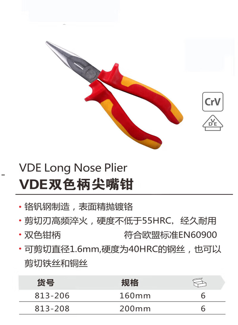 > 贝傅特 VDE双色柄老虎钳8 工业级钳子多功能钢丝钳 813-208