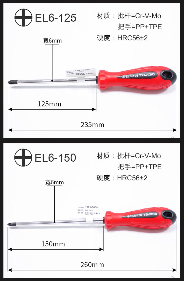 > 田岛(TaJIma)十字6×150mm橡胶柄螺丝刀EL6-150(+) 1301-0659