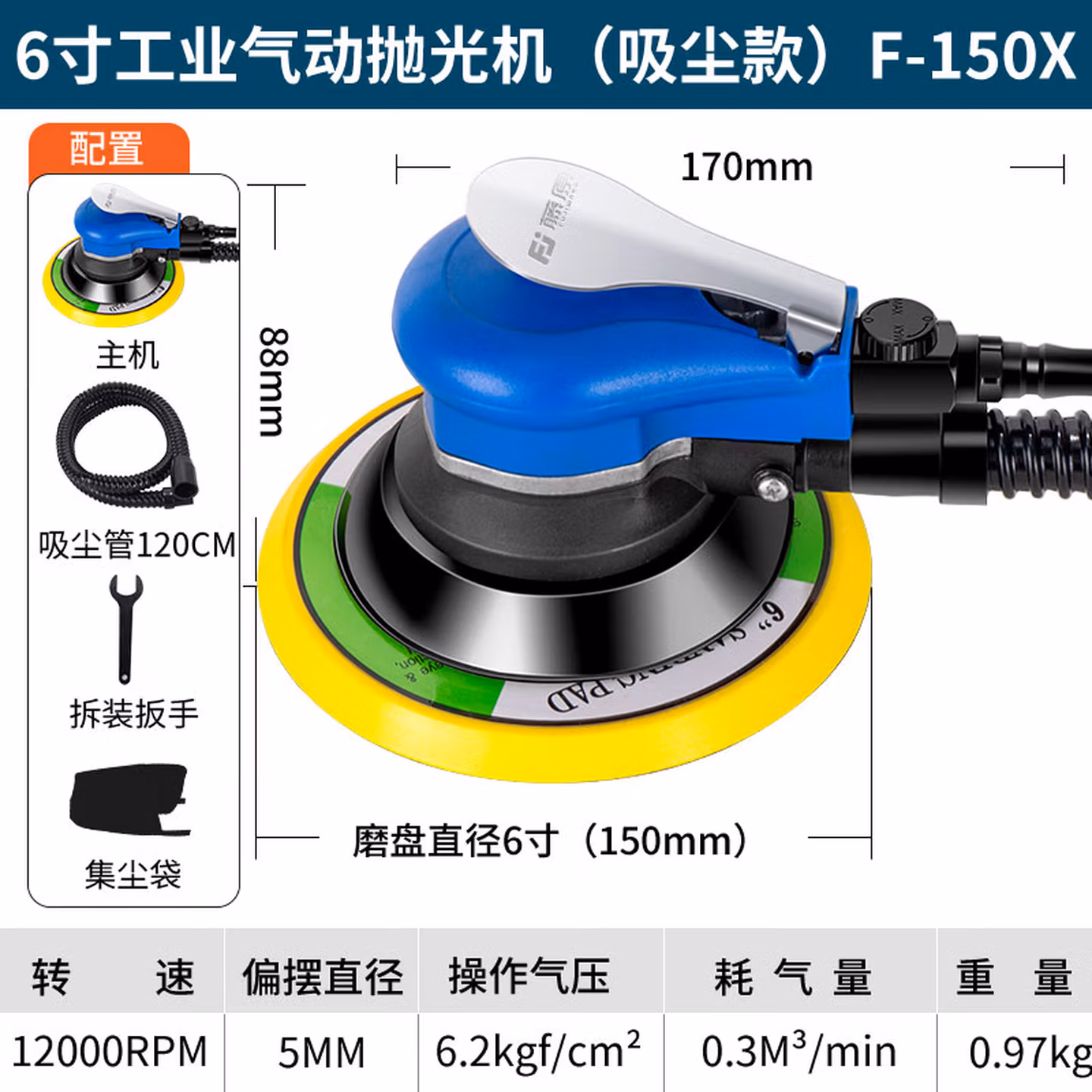 6寸工业气动抛光机(吸尘款)F-15