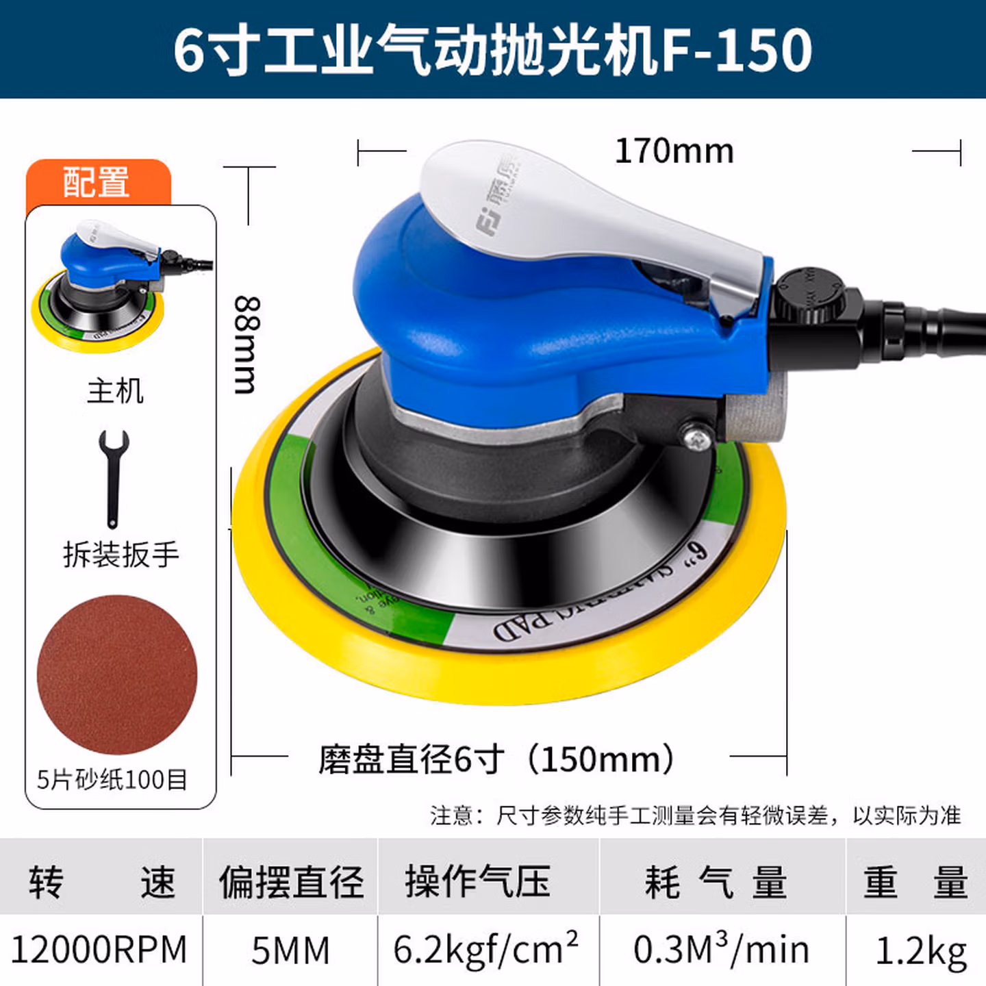 6寸工业气动抛光机F-150