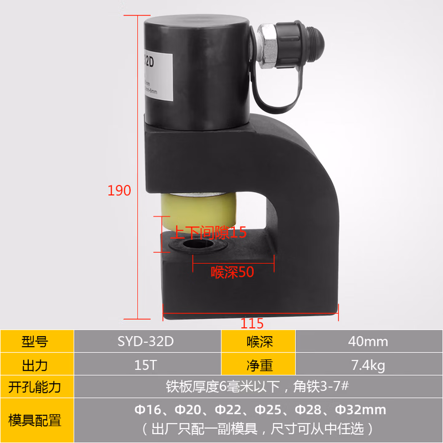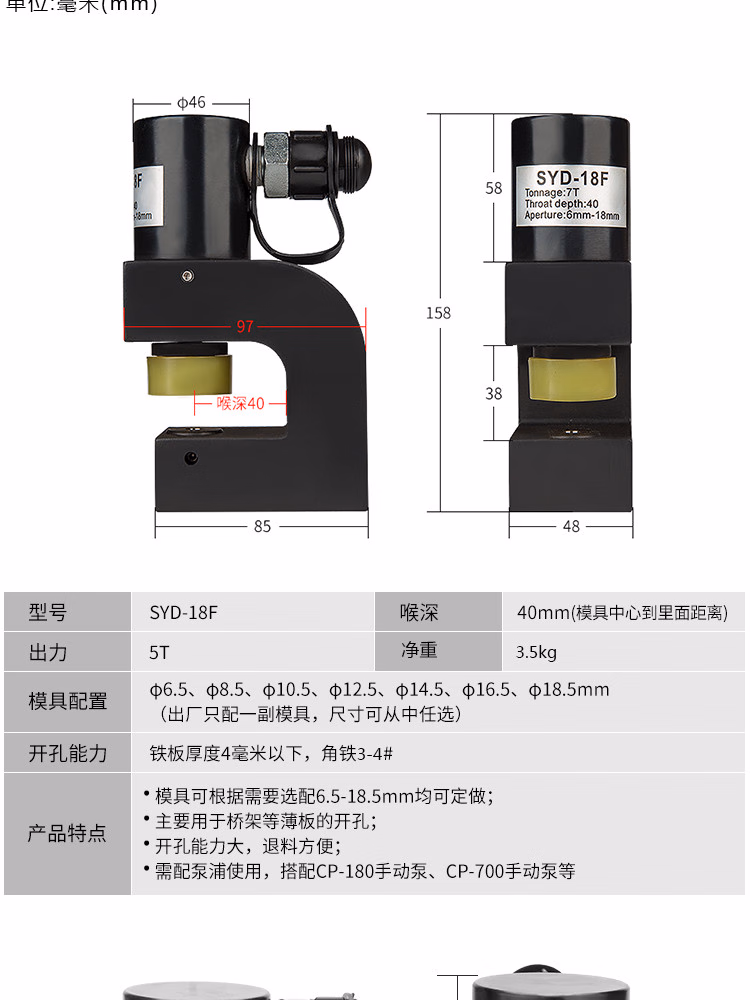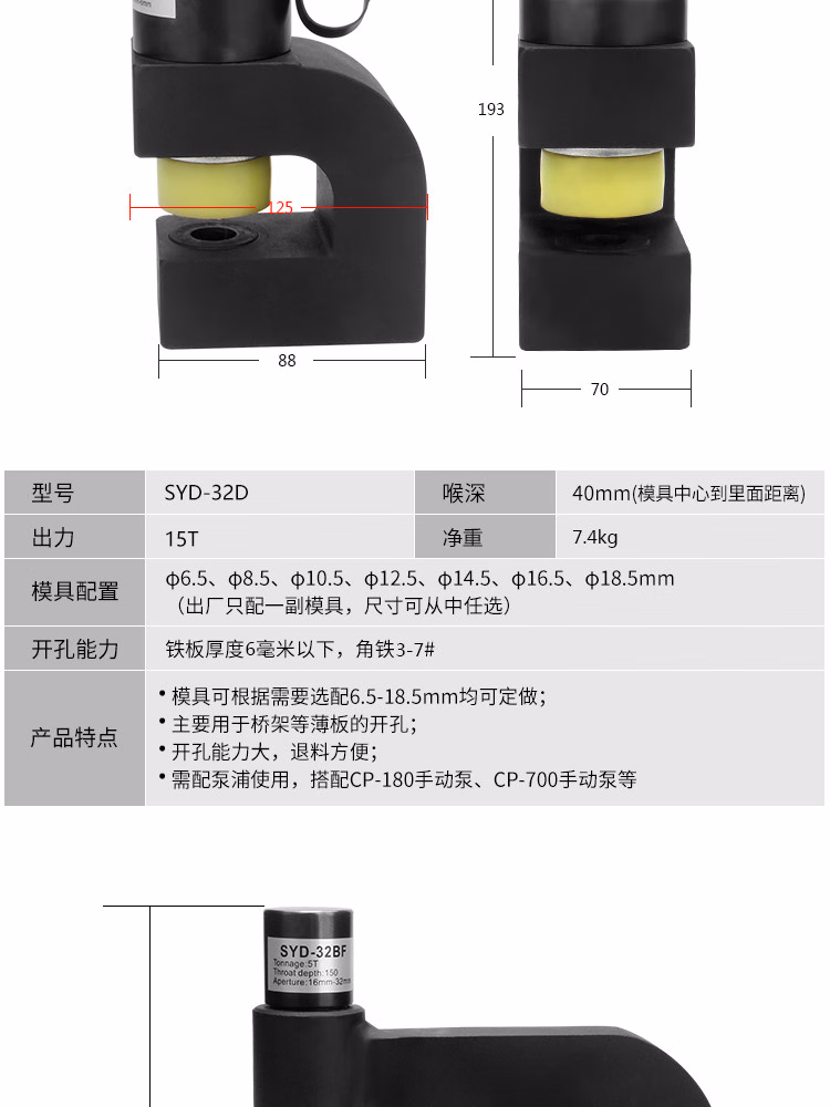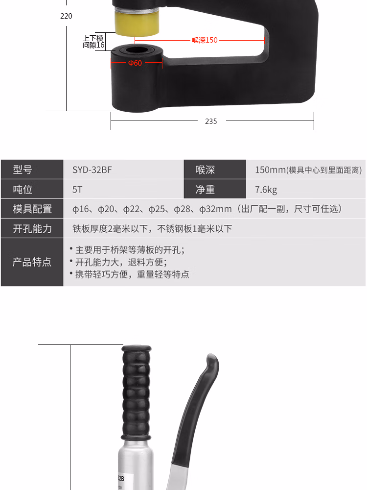 > 科至途定制18F便携式迷你角钢角铁桥架打孔机 角钢角铁冲孔机液压开孔器 SYD-25配1付模具(范围16-32)
