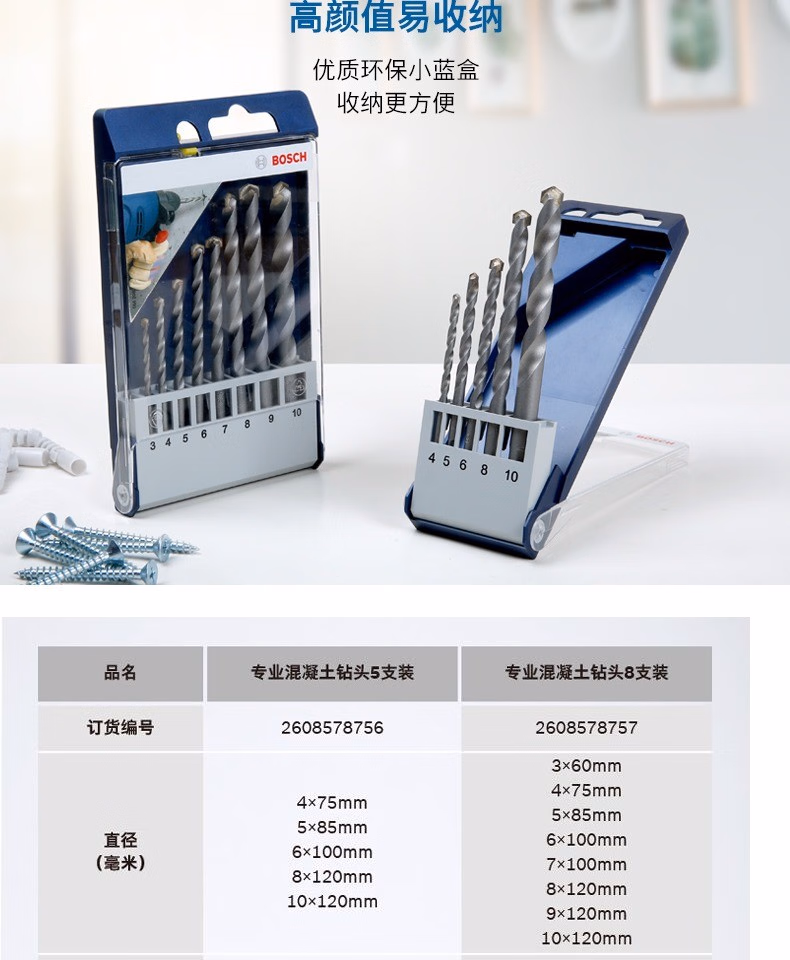 博世(BOSCH)套装建工石工冲击钻钻头混凝土打孔钻头小蓝盒 8支装