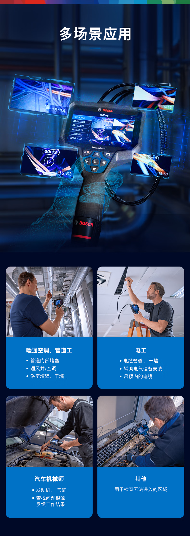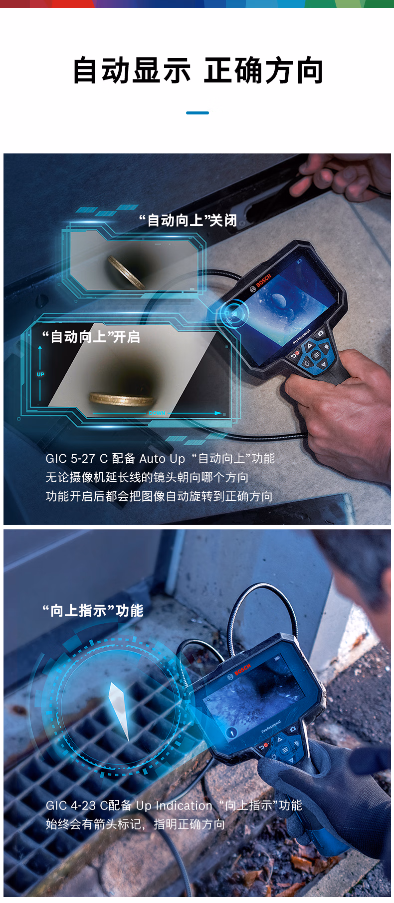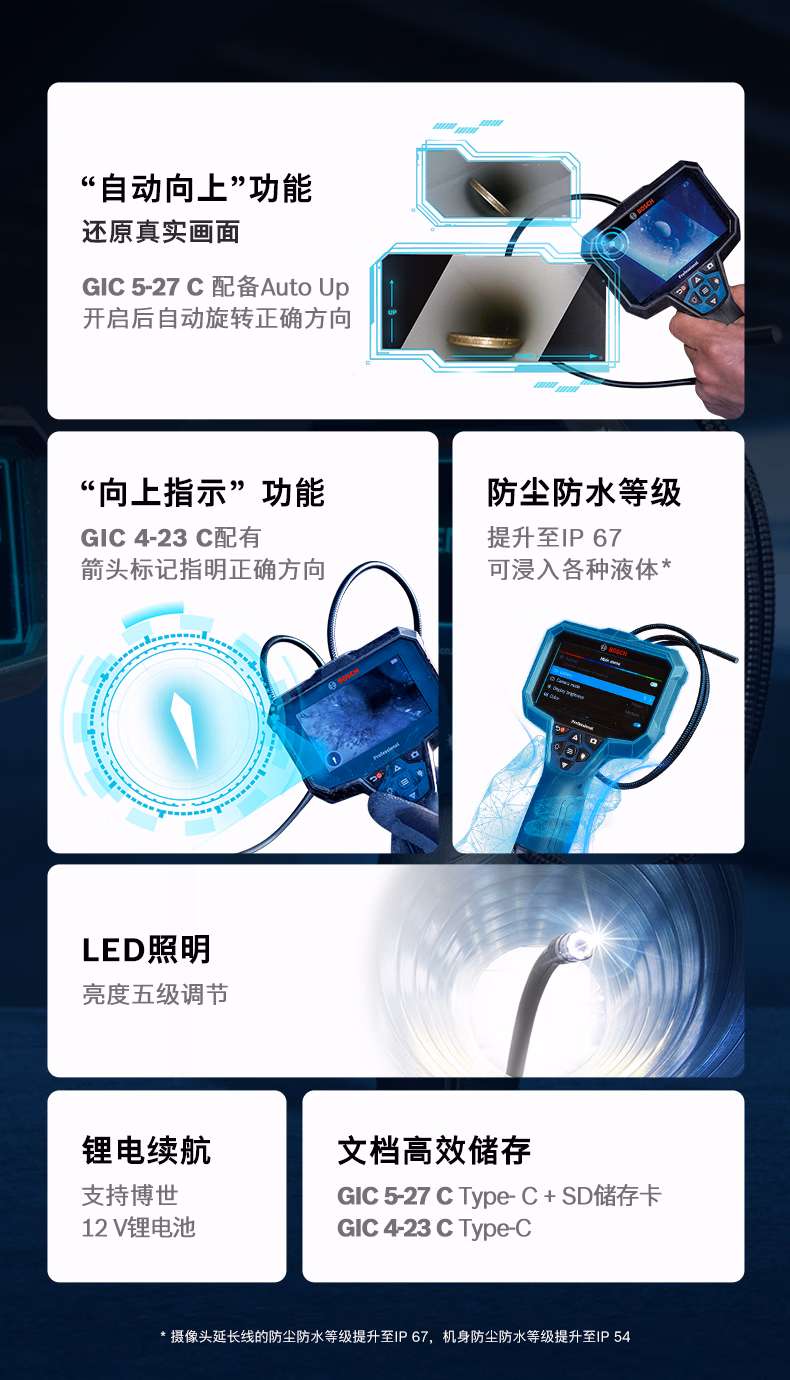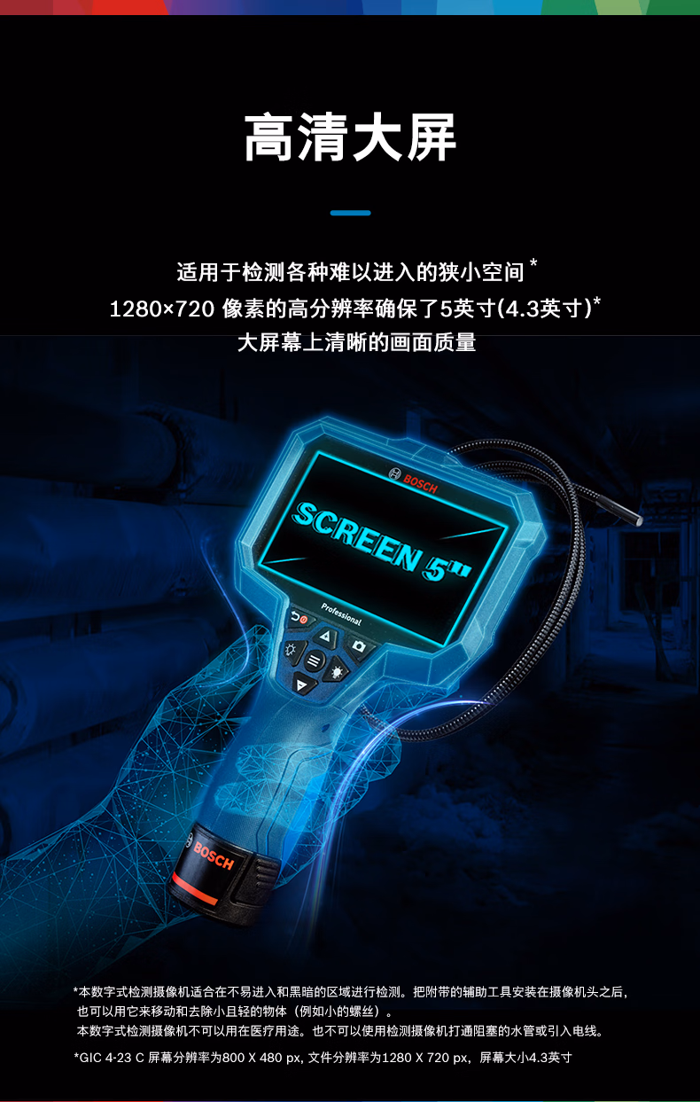 > 博世(BOSCH)高清工业内窥镜窥视仪检修摄像机GIC4-23C汽修管道高清摄像检测 GIC5-27C内窥镜分辨率1280x720px GIC120C