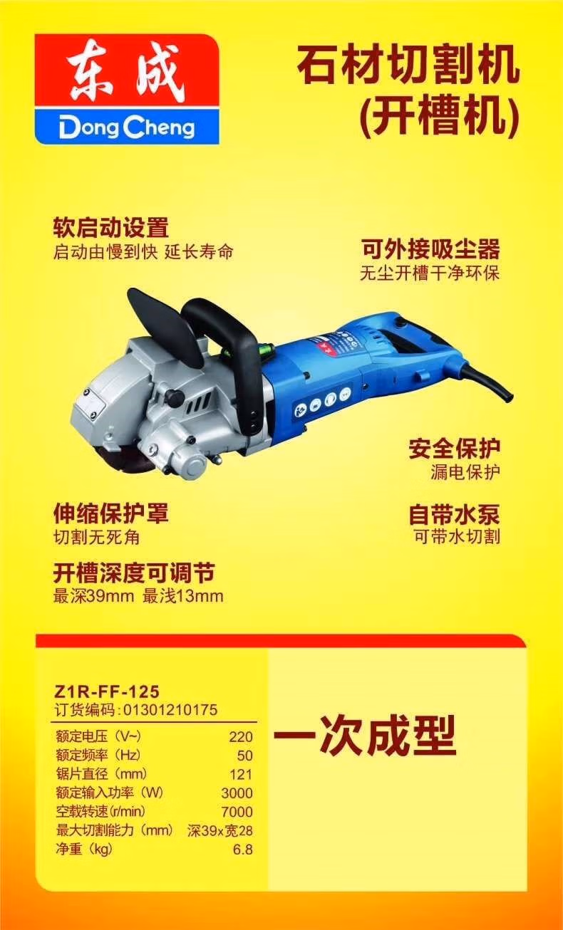 > 东成 开槽机一次成型大功率多片云石机混凝土墙面石材切割机电动工具Z1R-FF-125 3000W 标配(含锯片)