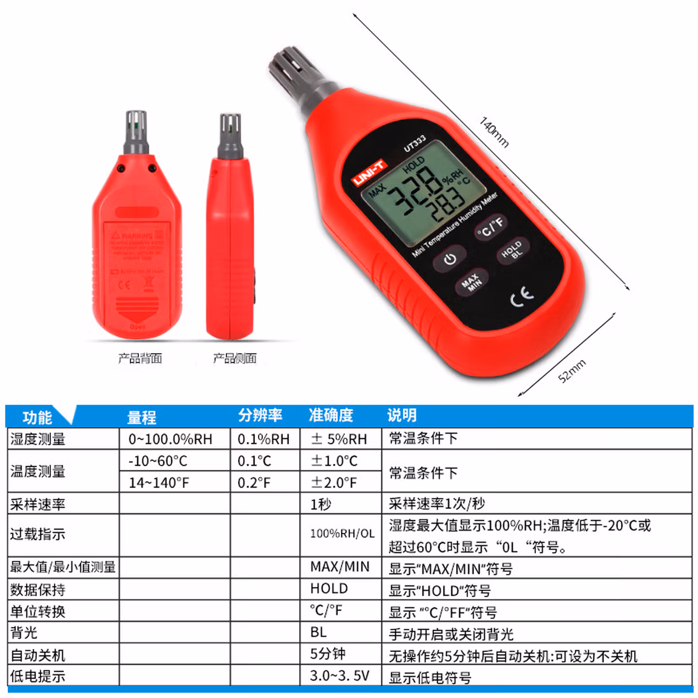 优利德UT333 迷你温湿度计数字温湿度表 工业级湿度计温度计