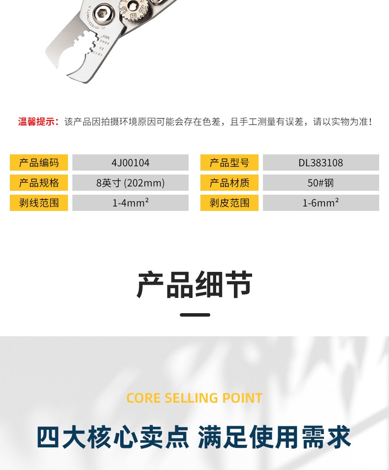 得力(deli) 多功能电缆剥线钳 电工分线钳电子手动工具8英寸 4J00104