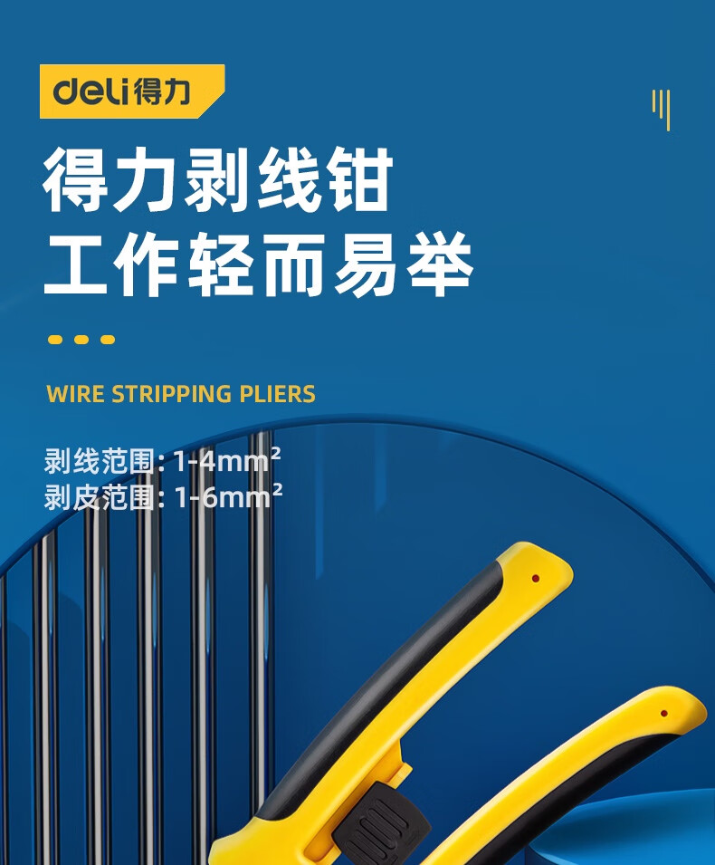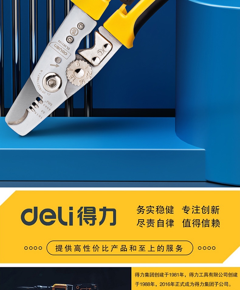 > 得力(deli) 多功能电缆剥线钳 电工分线钳电子手动工具8英寸 4J00104