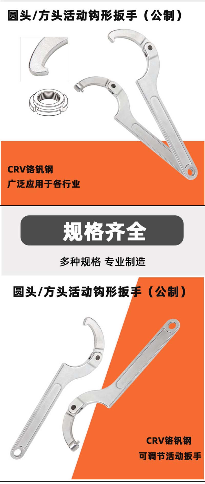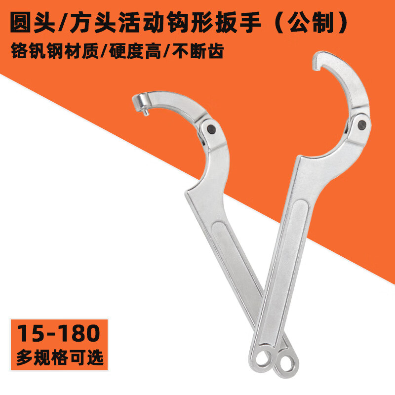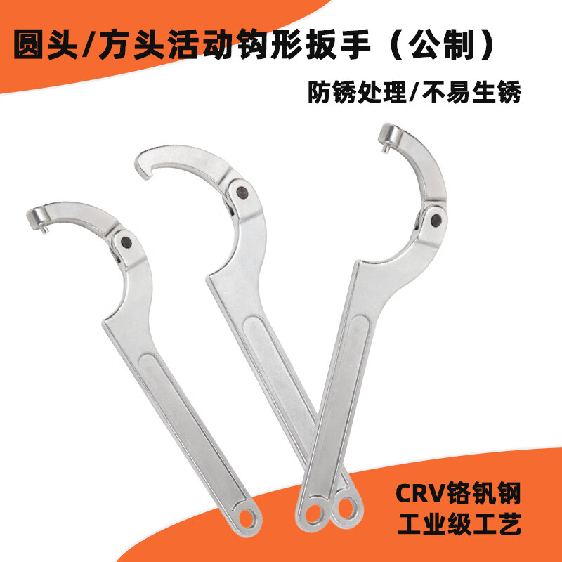 安达通 公制活动钩形扳手 月牙型可调节扳手方头圆头活动钩形扳手 TD1207A方头活动扳手80-120mm
