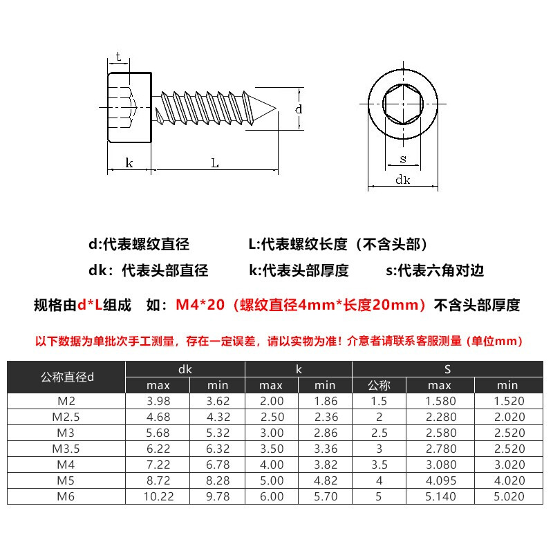 佰瑞特 304不锈钢内六角自攻螺丝家具模型音响螺钉杯头圆柱头螺丝自攻钉 M3*6【100粒】