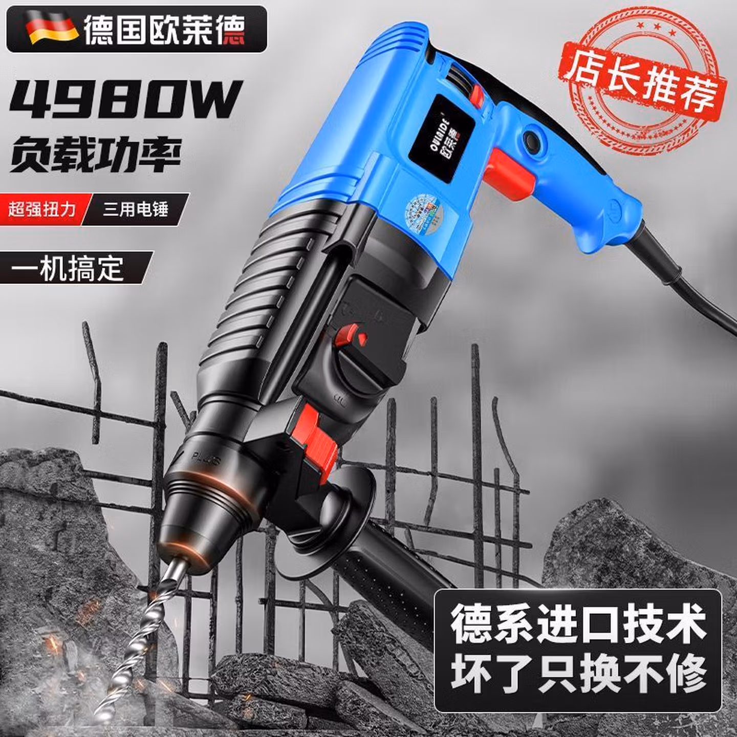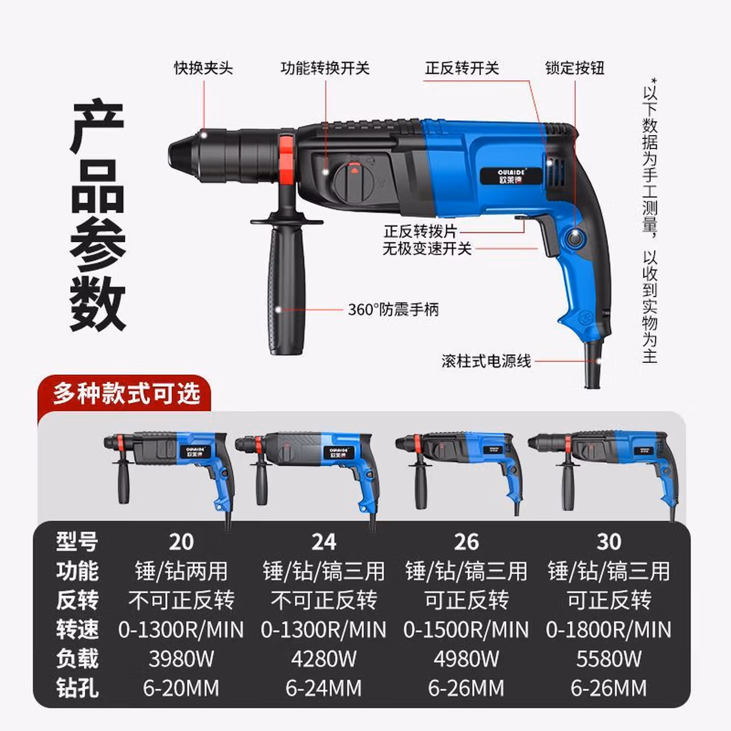 欧莱德(OULAIDE)轻型电锤电镐电钻小型家用大功率工业级冲击钻混凝土电锤 26电锤三用升级款带豪华配件