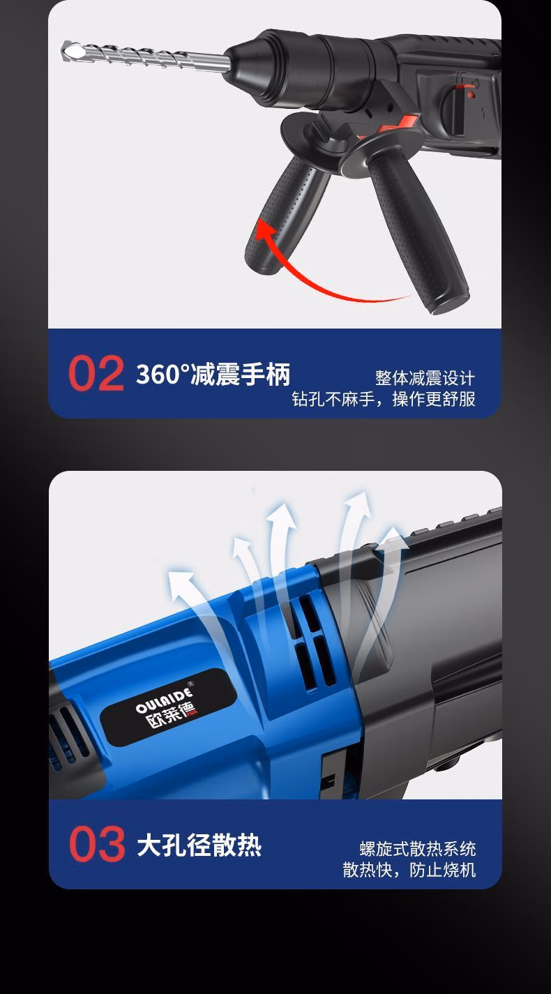> 欧莱德(OULAIDE)轻型电锤电镐电钻小型家用大功率工业级冲击钻混凝土电锤 26电锤三用升级款带豪华配件