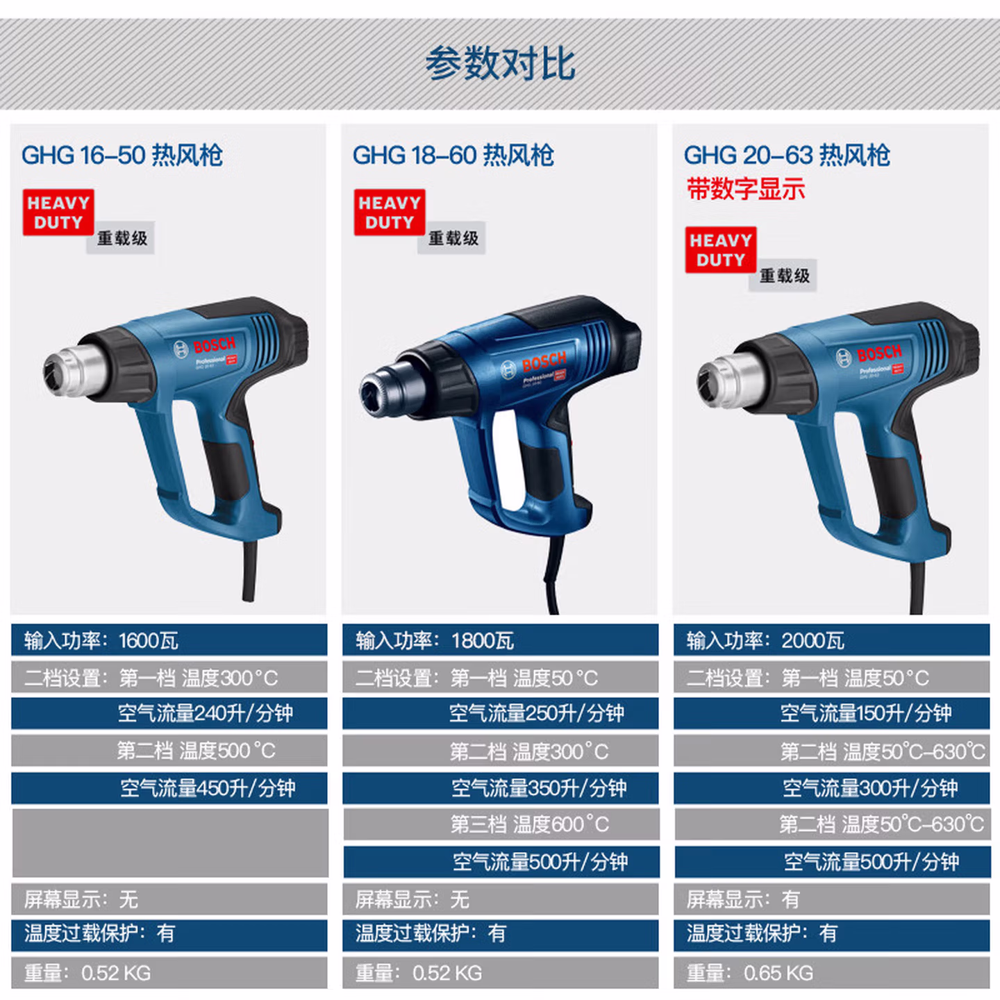 > 博世(BOSCH)大功率热风枪塑料焊枪烤枪热风机汽车贴膜三挡调温GHG 20-63 博世GHG 20-63(三挡调温)