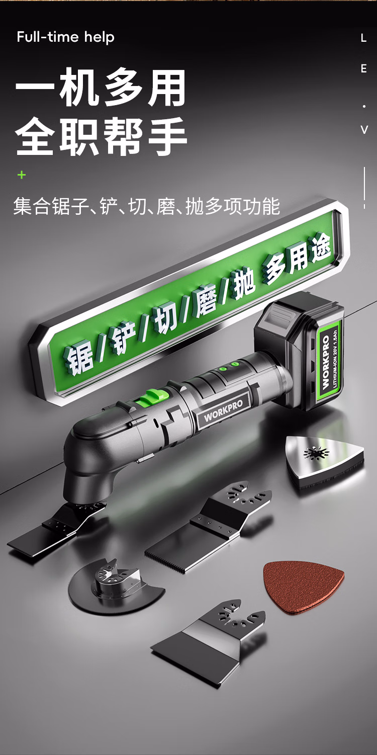 万克宝(WORKPRO)锂电万用宝切割机摆动铲木工开槽机抛光机打磨机修边机家用电锯