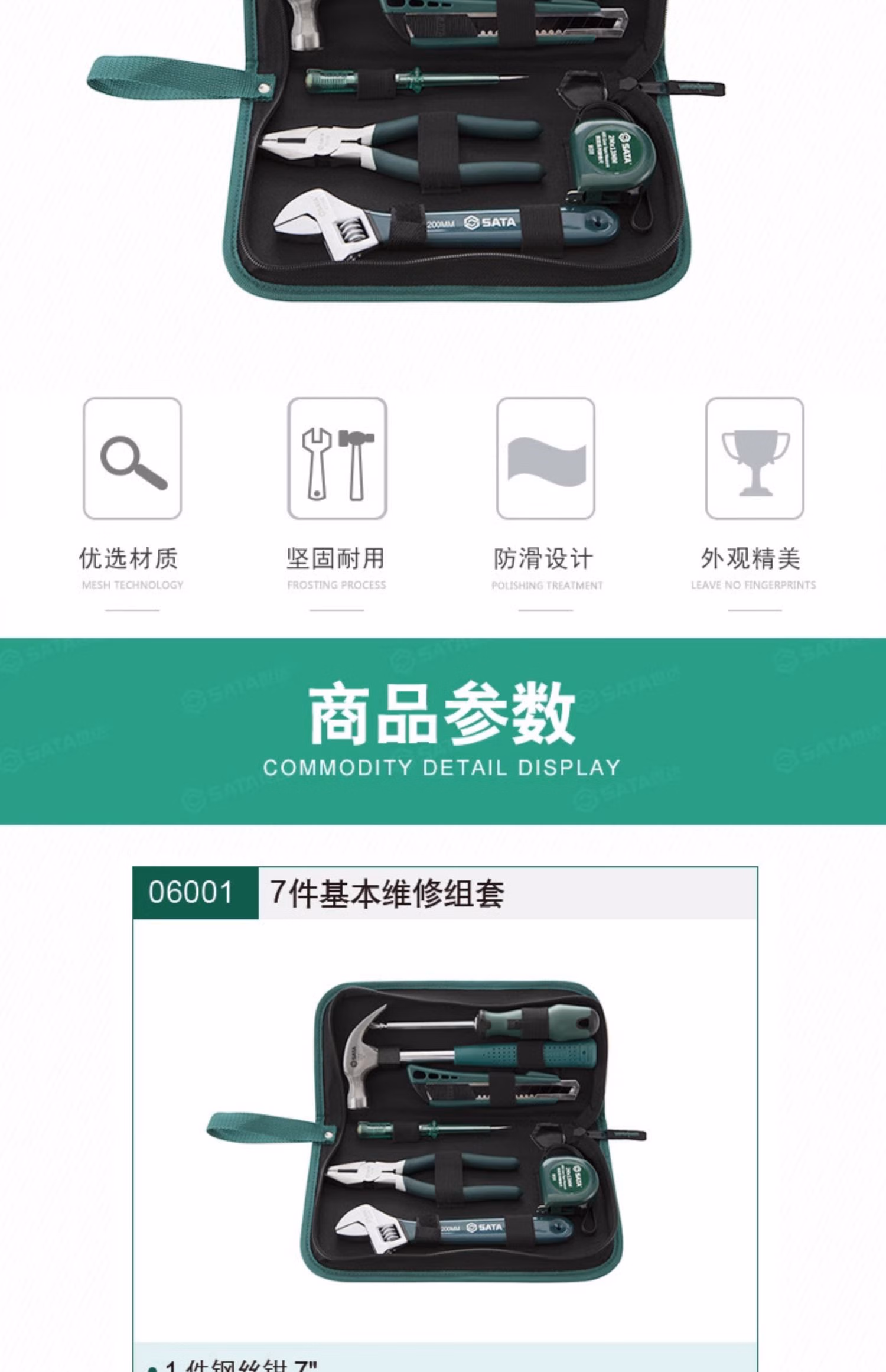 > 世达(SATA)世达家用工具套装日常维修扳手螺丝刀钳子全套家庭工具包大全6001 06001A 15件套