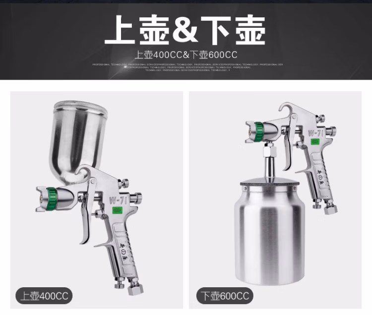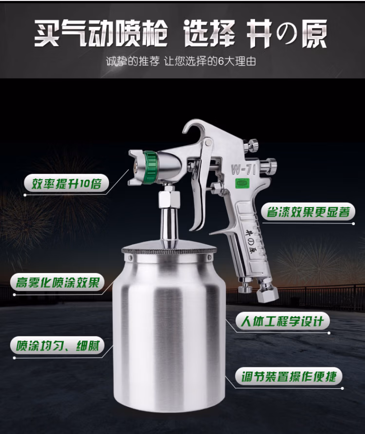 > W-71上下壶乳胶漆钣金汽车喷漆工具高雾化气动喷漆枪 井原W-77上壶口径3.0