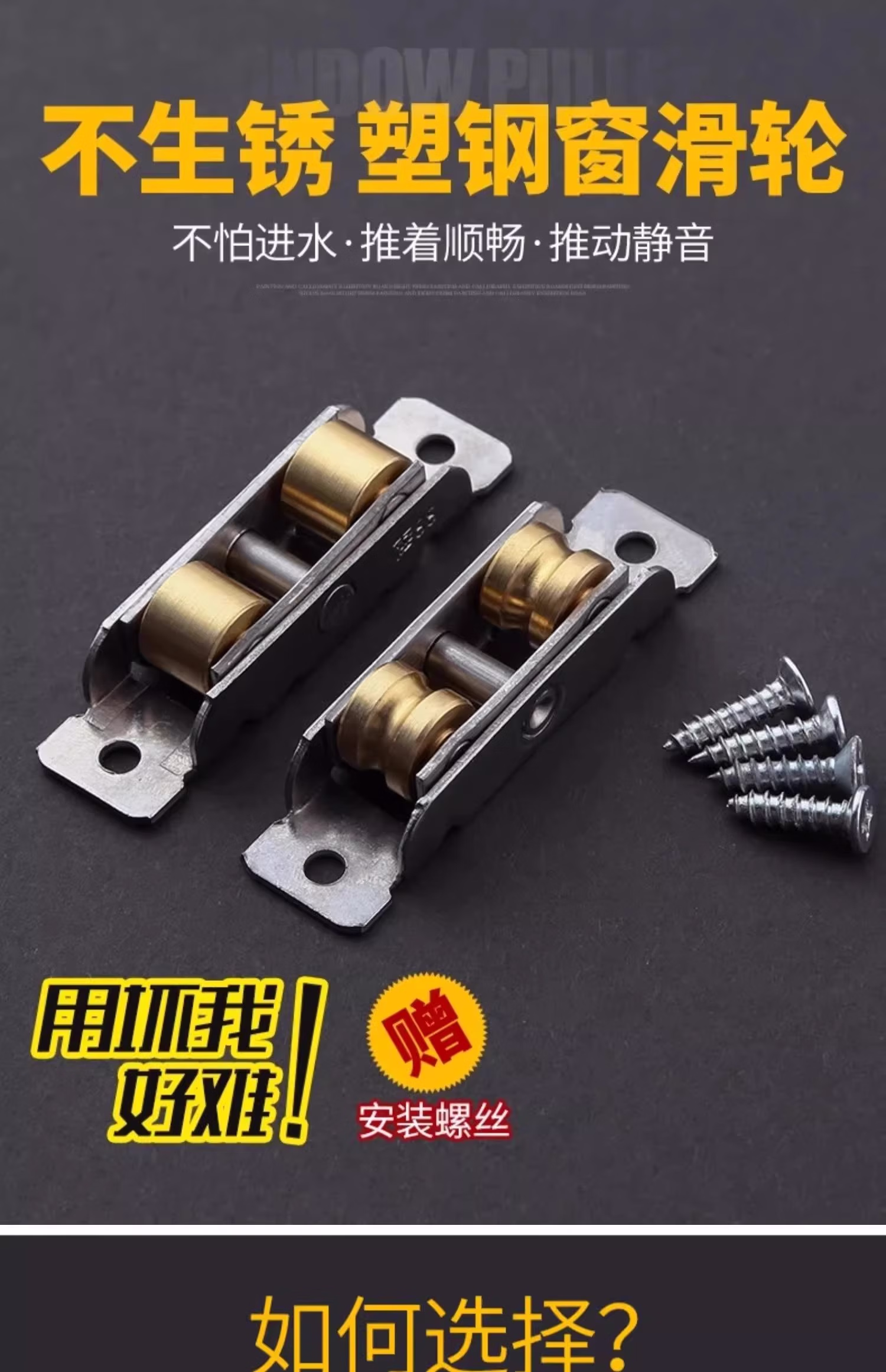泰姆仕塑钢窗滑轮不锈钢铜轮防水锈88型塑料门窗滚轮77型80窗户纱窗轮子