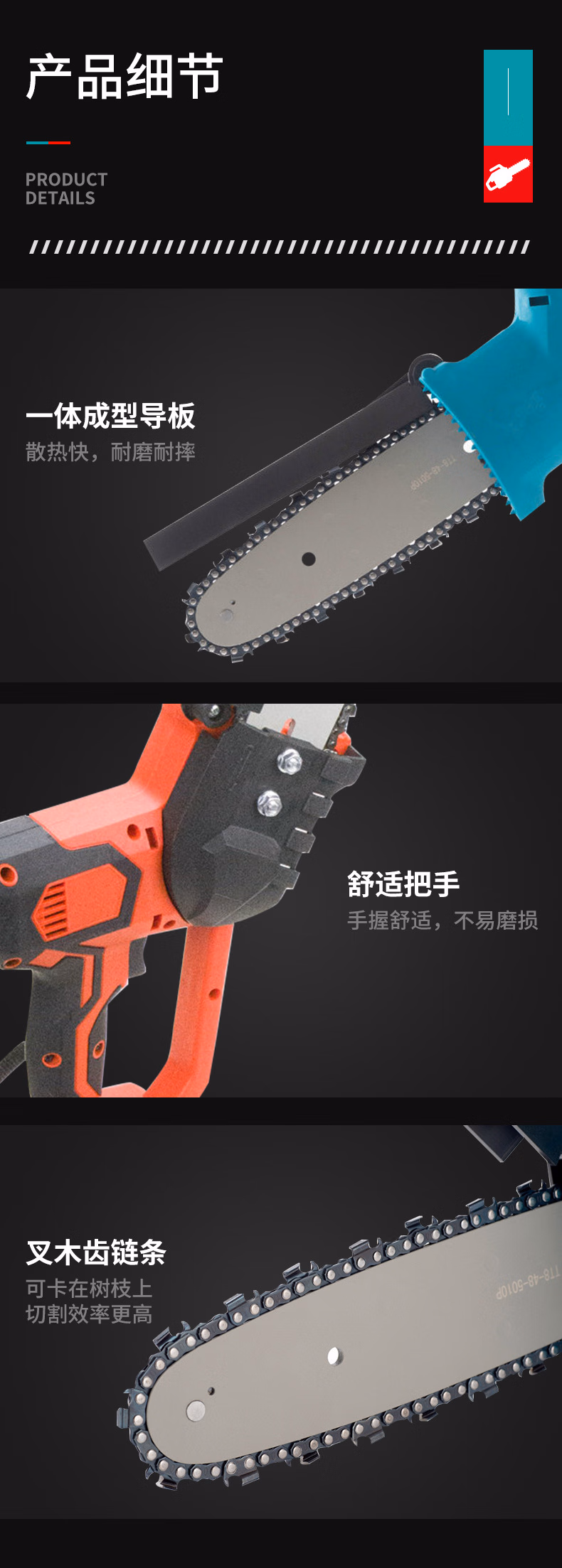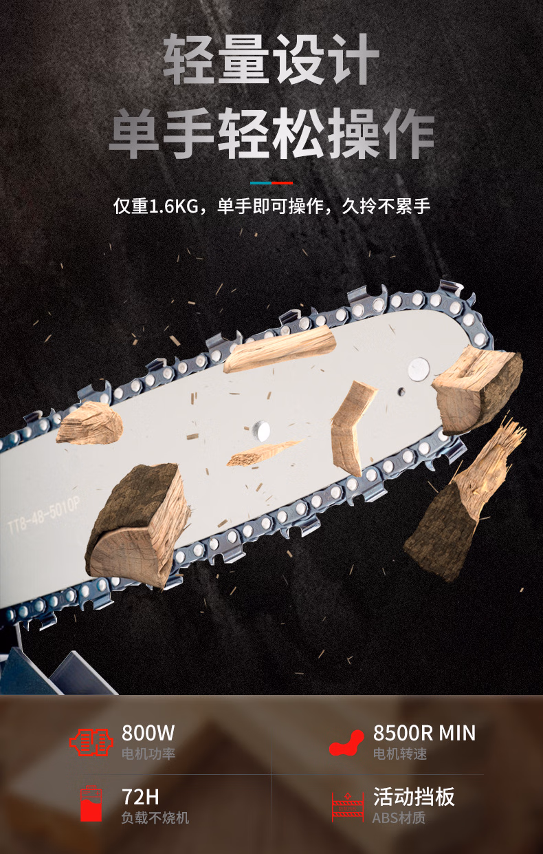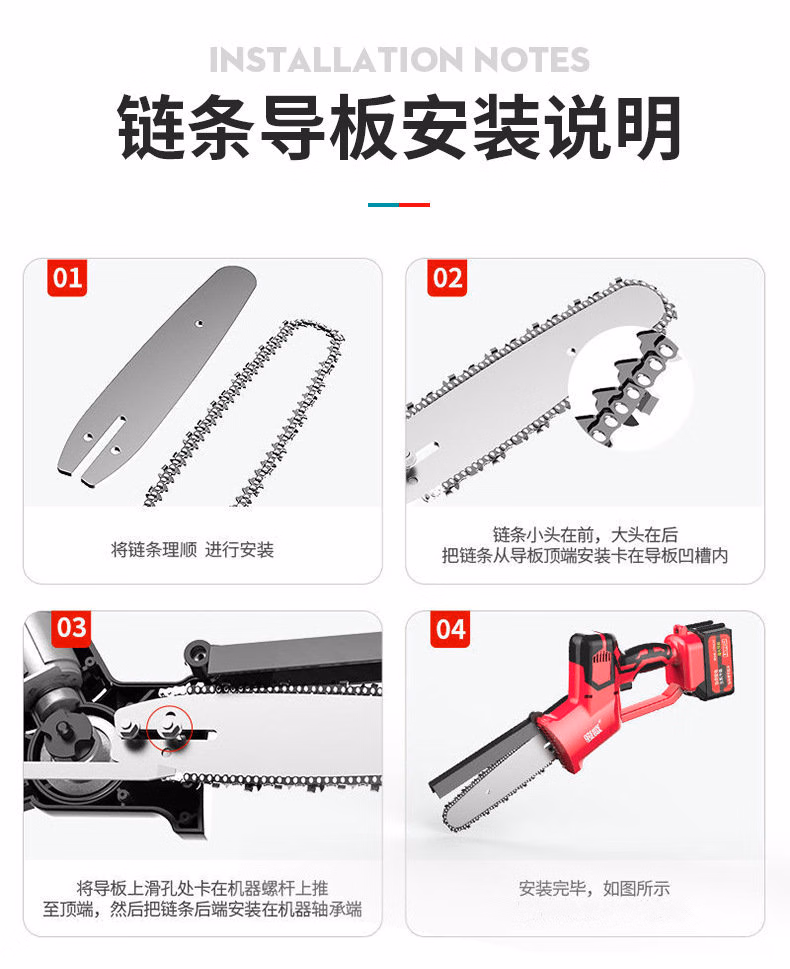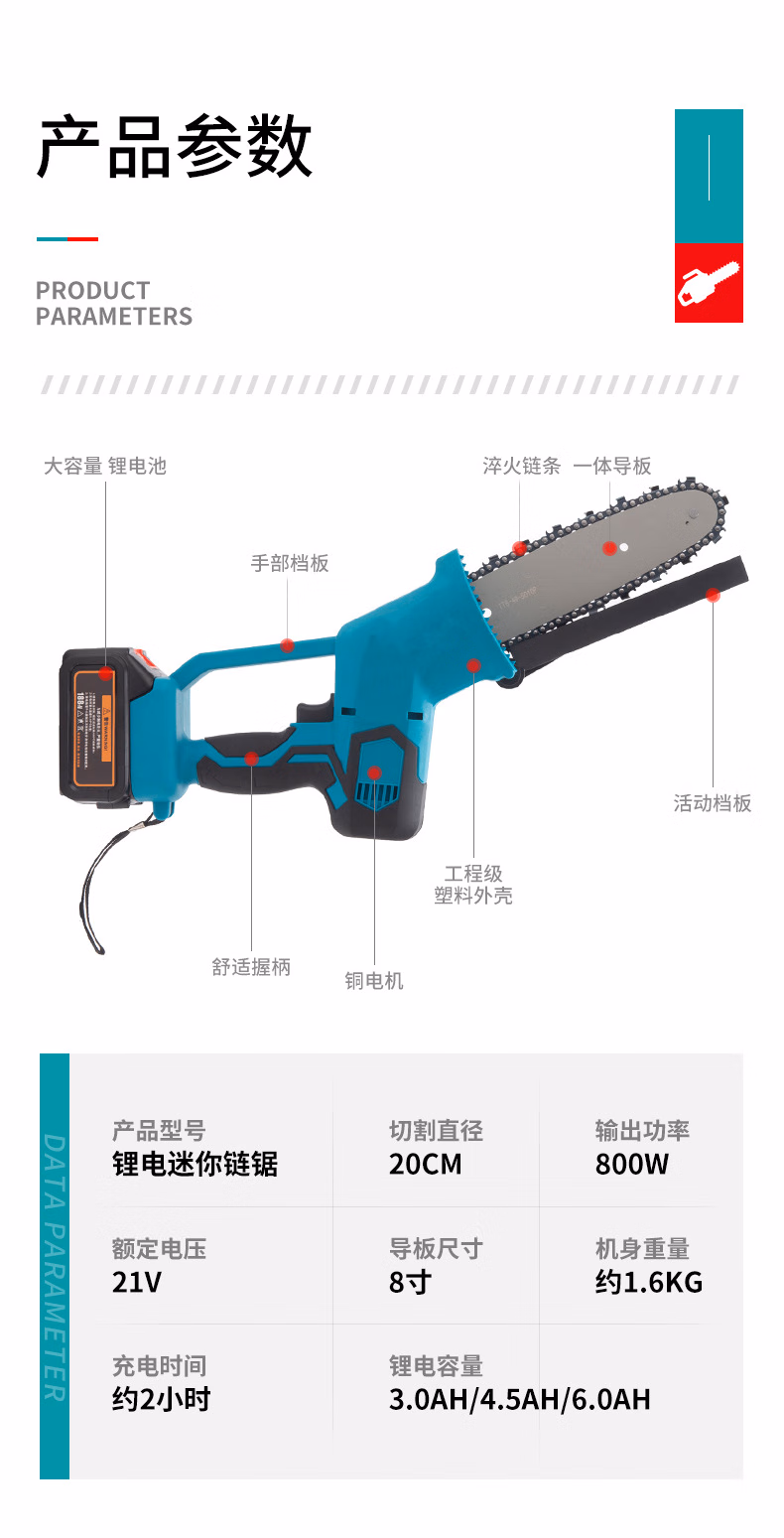 > 安达通 8寸锂电锯充电式 大功率单手锯修枝锯小型伐木砍树锯充电式电链锯 8寸裸机含配件无电池无塑箱