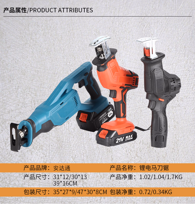 > 安达通 21V锂电马刀锯 小型手持充电式马刀锯12v锂电马刀锯户外伐木电动往复锯 21V马刀锯+电池*2