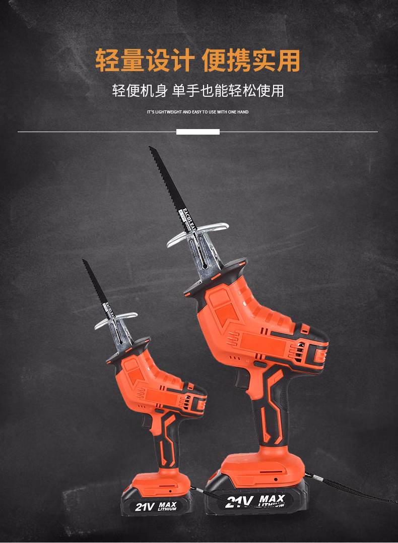 安达通 21V锂电马刀锯 小型手持充电式马刀锯12v锂电马刀锯户外伐木电动往复锯 21V马刀锯+电池*2