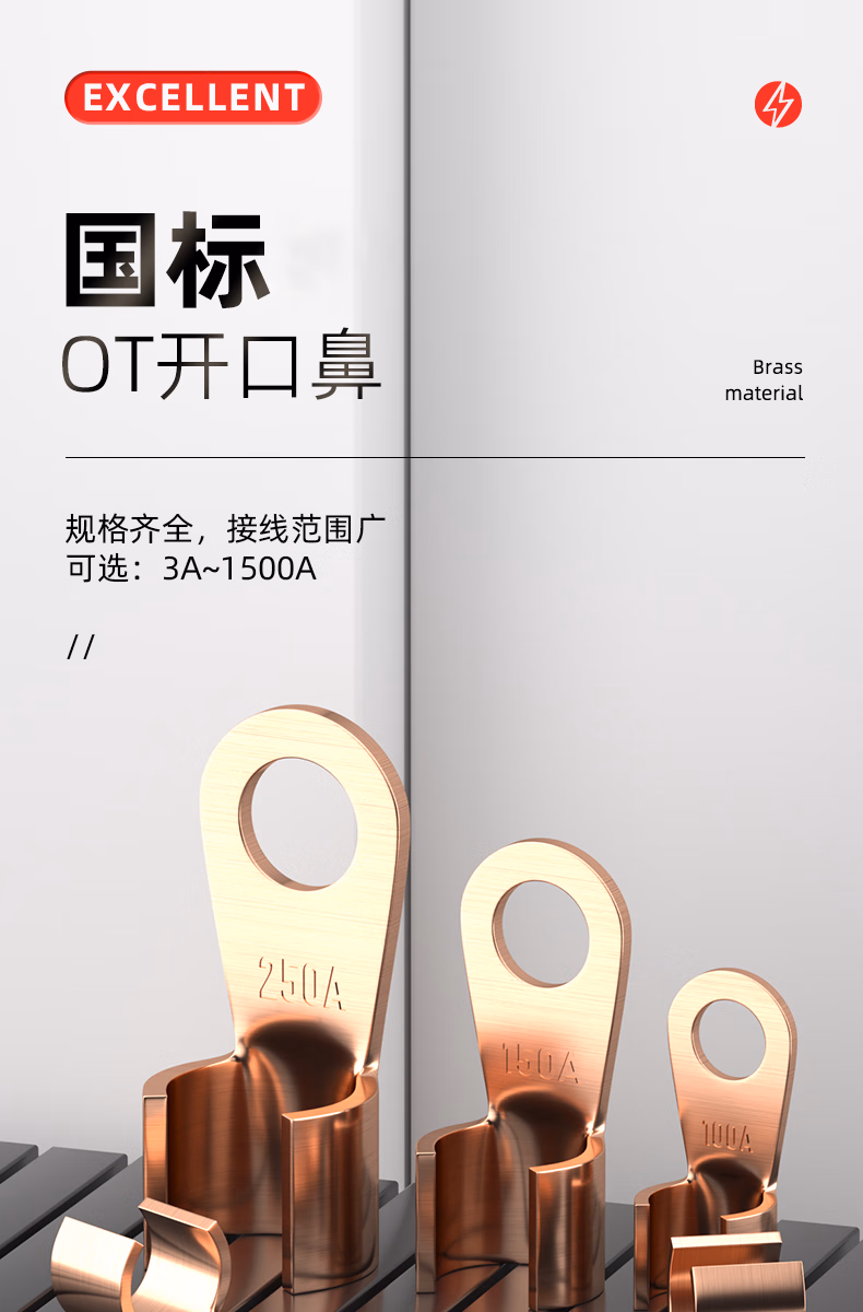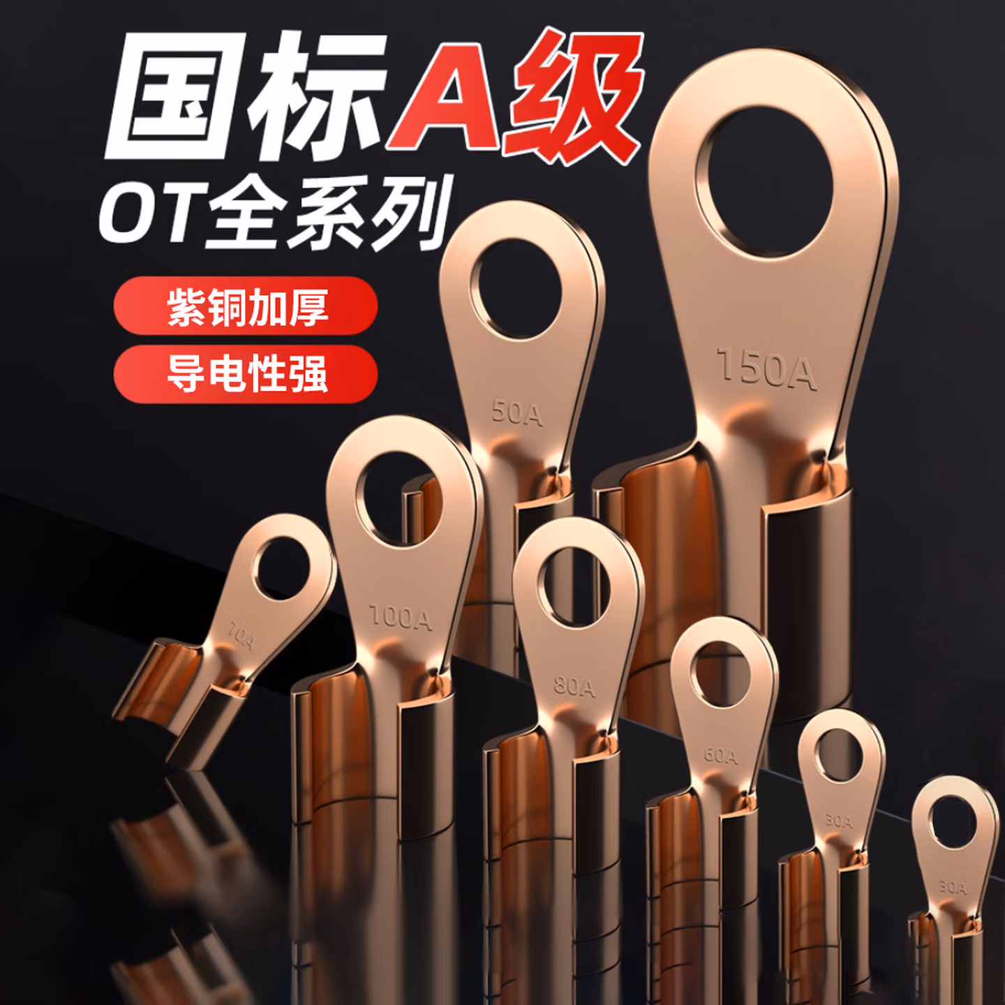 > 安达通 铜鼻子 OT开口线鼻子冷压接线端子加厚铜线耳接线铜鼻子 60A(可接4-16mm平方)50只